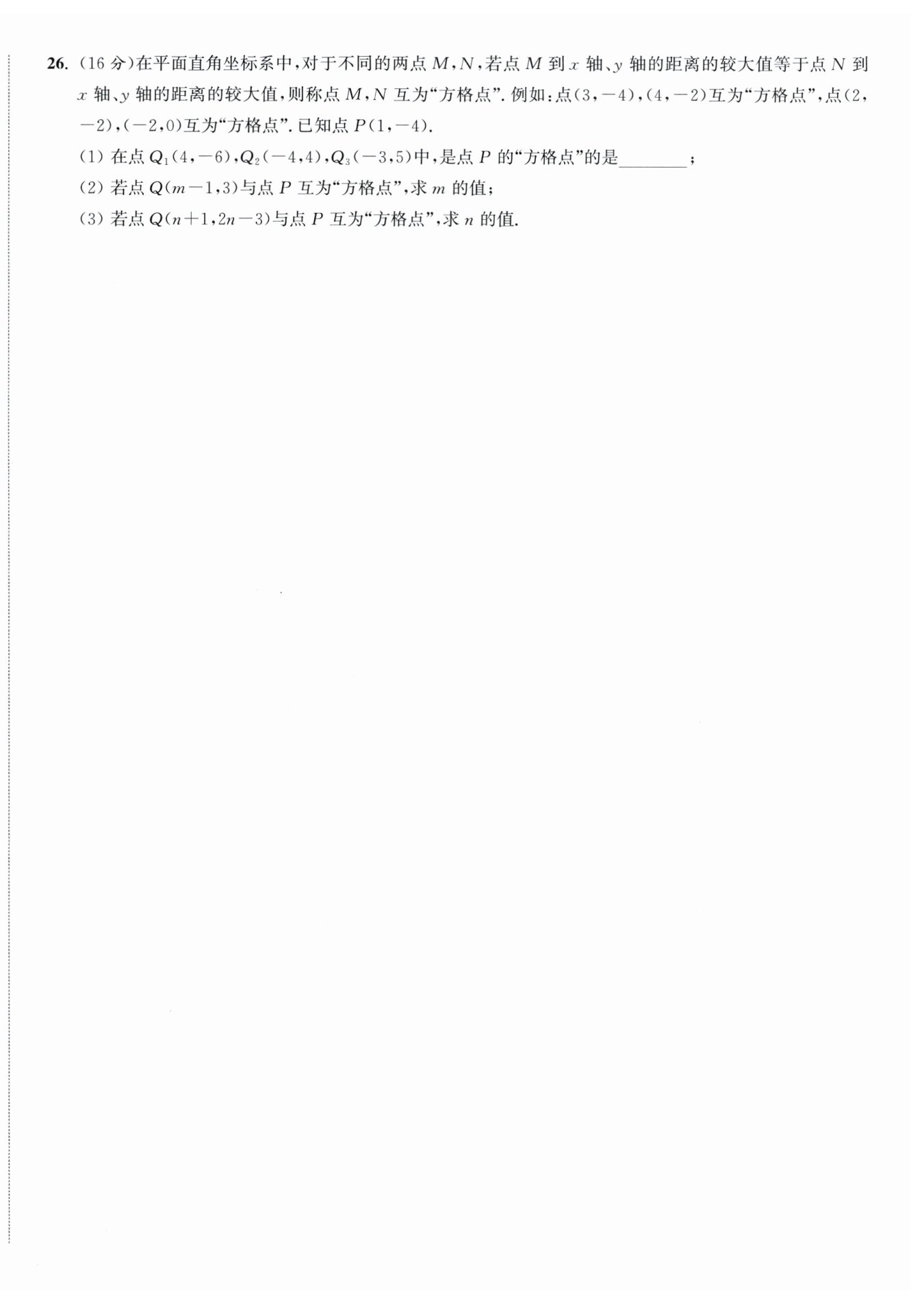$(3)若点Q(n+1,2n−3)与点P互为“方格点”,$