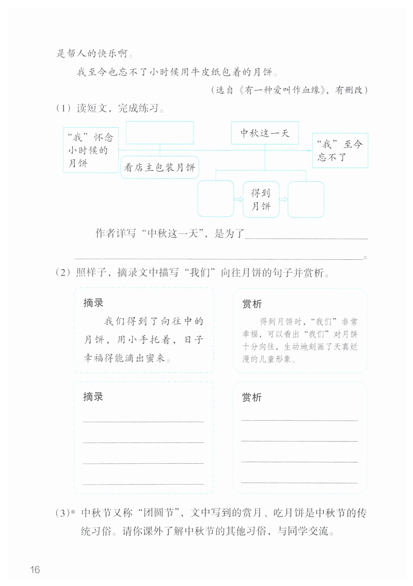 饼弥足珍贵,因此要一大家子小心翼翼地分吃,也表达了作者对于