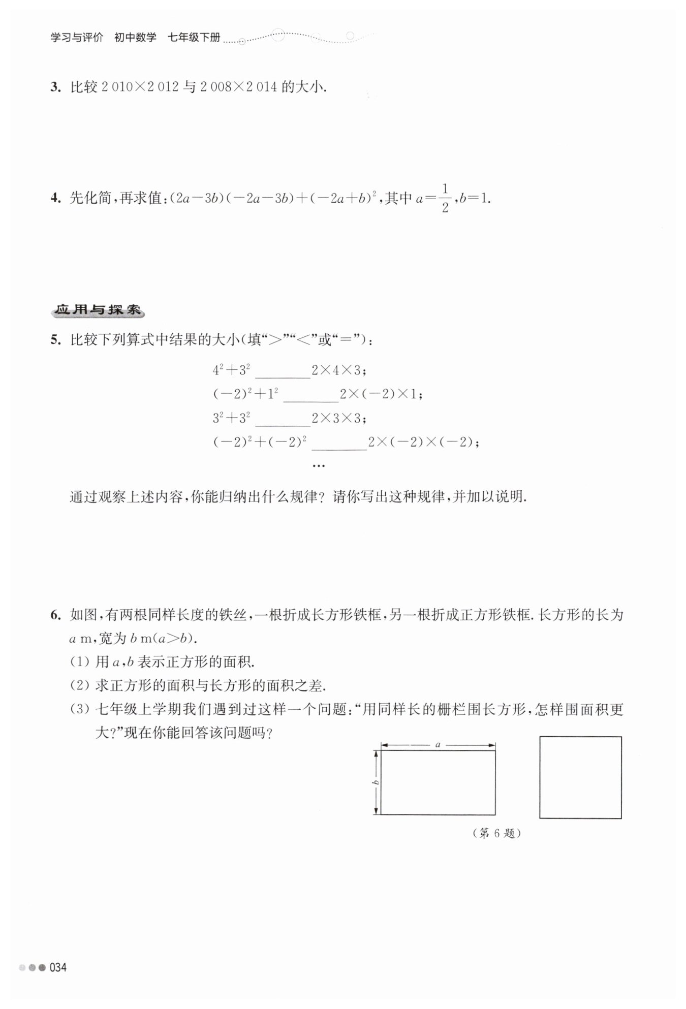 $(\frac {a+b}2)²=\frac {a²+2ab+b²}4(m²)$