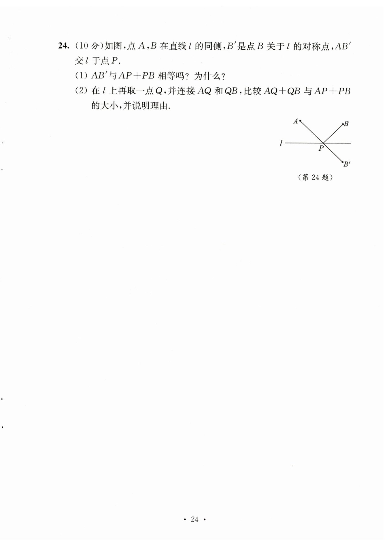 $则AP + PB = AP + PB' = AB'$