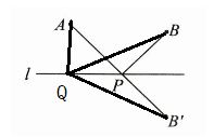$因为B'是点B关于l的对称点,所以QB = QB'$