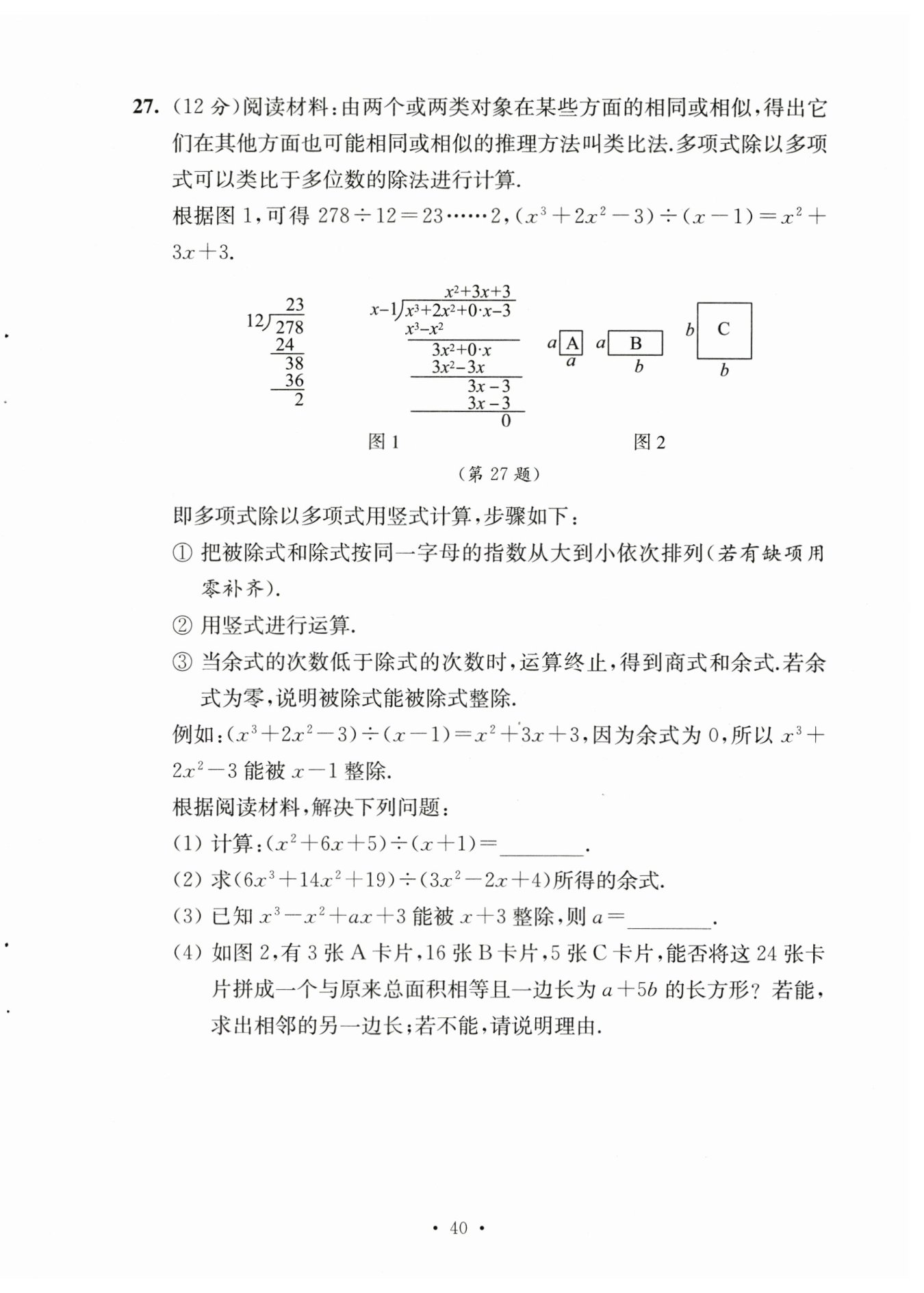 (4)能。$3$张$A$卡片面积为$3a^{2},$$16$张$B$卡片面积为$16ab,$$5$张$C$卡片面积为$5b^{2},$总面积为$3a^{2}+16ab + 5b^{2}。$