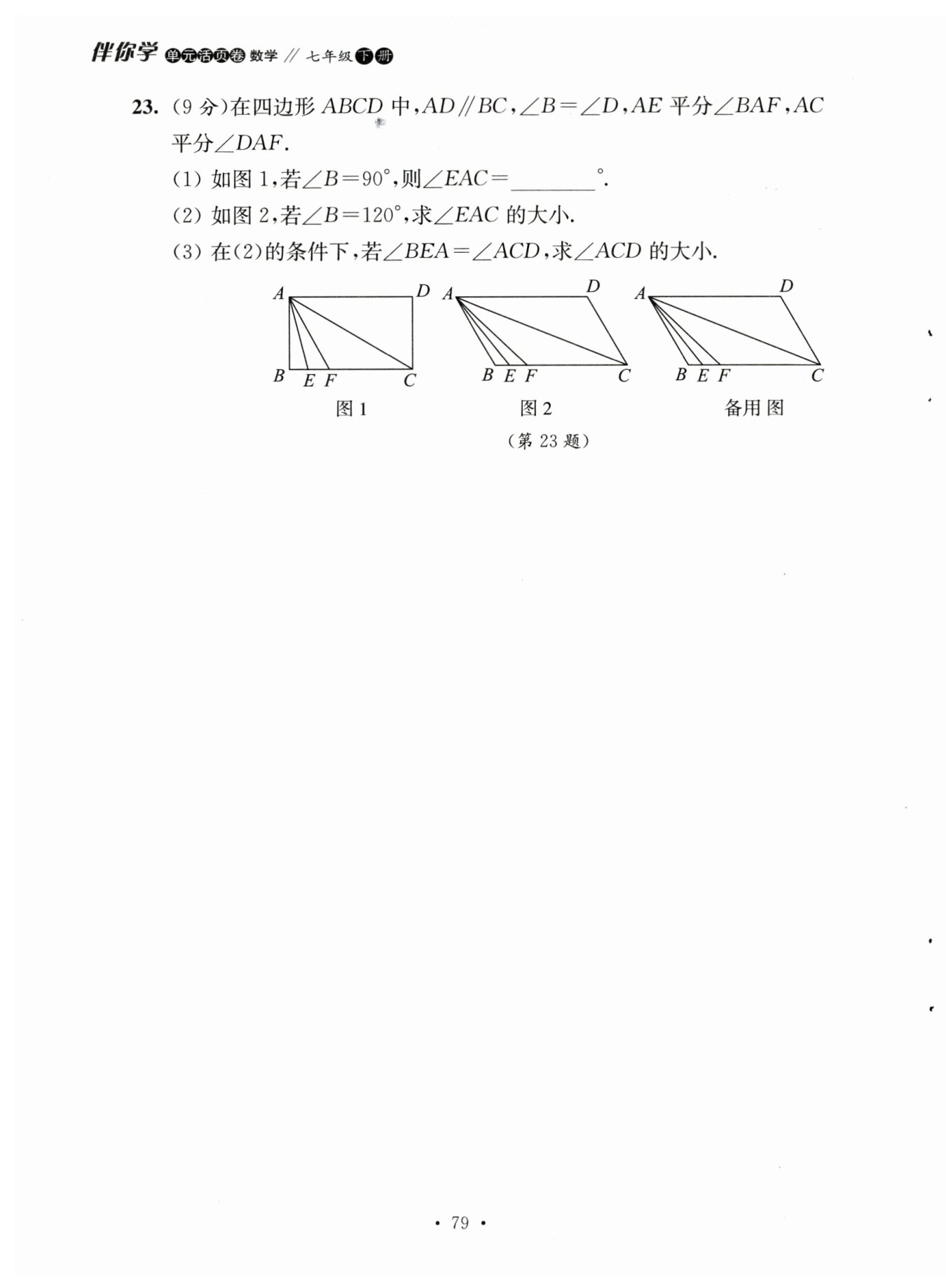 (2) 解:因为$AD// BC,$$\angle B = 120^{\circ},$所以$\angle BAD = 180^{\circ}-\angle B = 60^{\circ},$