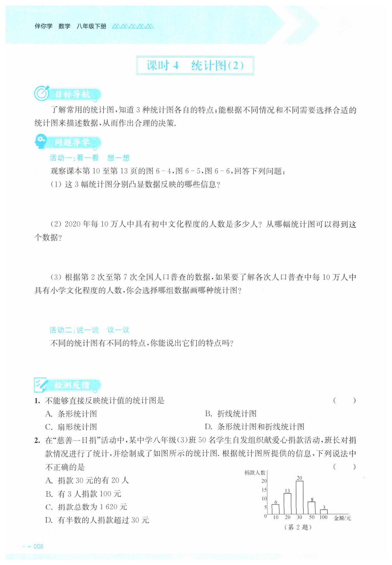 本题考查三类统计图的特点及实际应用,侧重培养学生读图、选图解决统计问题的能力,属于基础统计类题型。