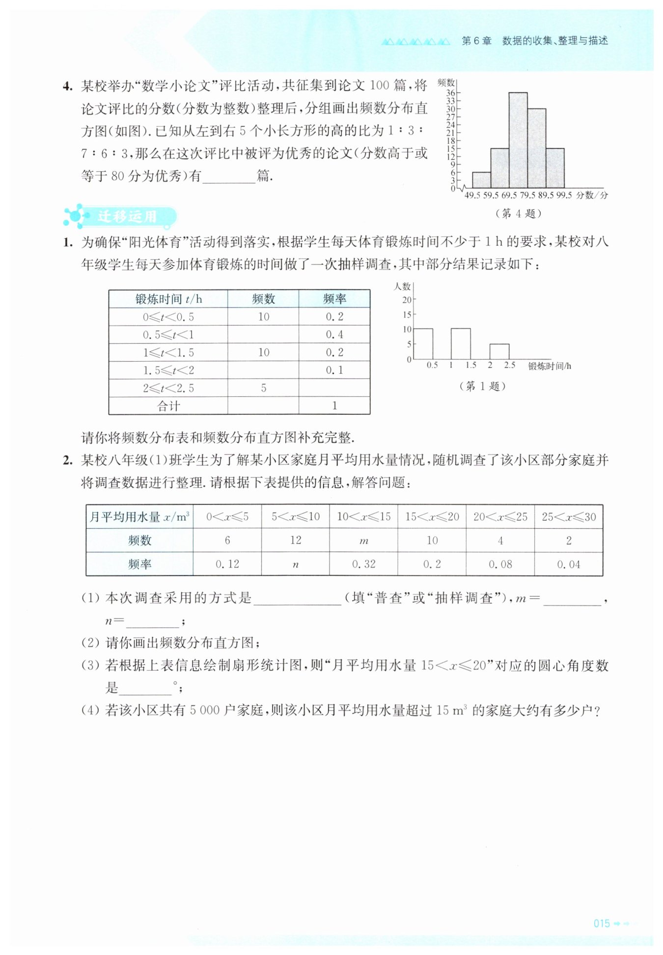 频数分布表依次填20、5、0.1、50;补全频数分布直方图(图略)