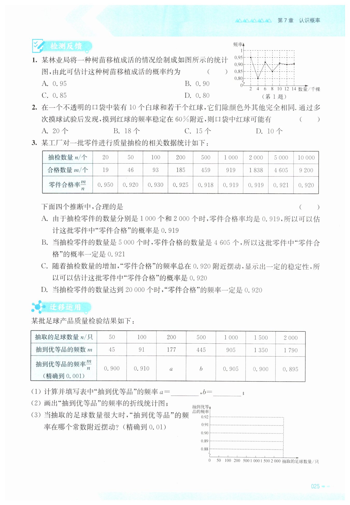 本题考查频率与概率的关系,需明确频率是概率的近似值,只有当频率在某个数值附近稳定摆动时,才能用该数值估计概率,避免将单次或少数几次的频率等同于概率。