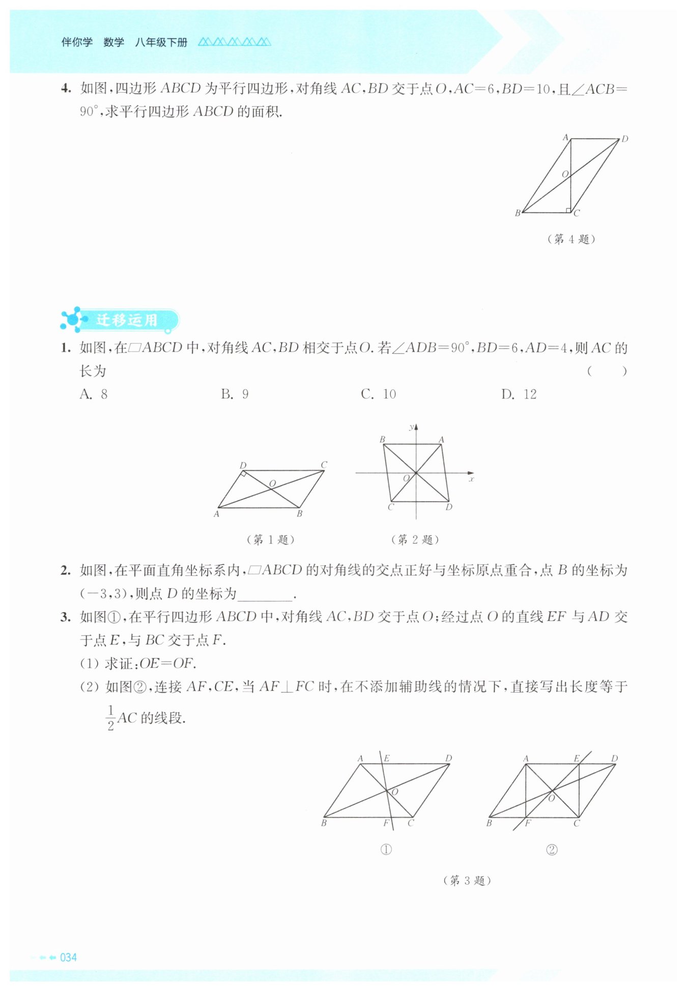 本题考查平行四边形性质与关于原点对称的点的坐标特征的综合应用,解题关键是明确平行四边形对角线互相平分,进而得到点B与点D关于原点对称。