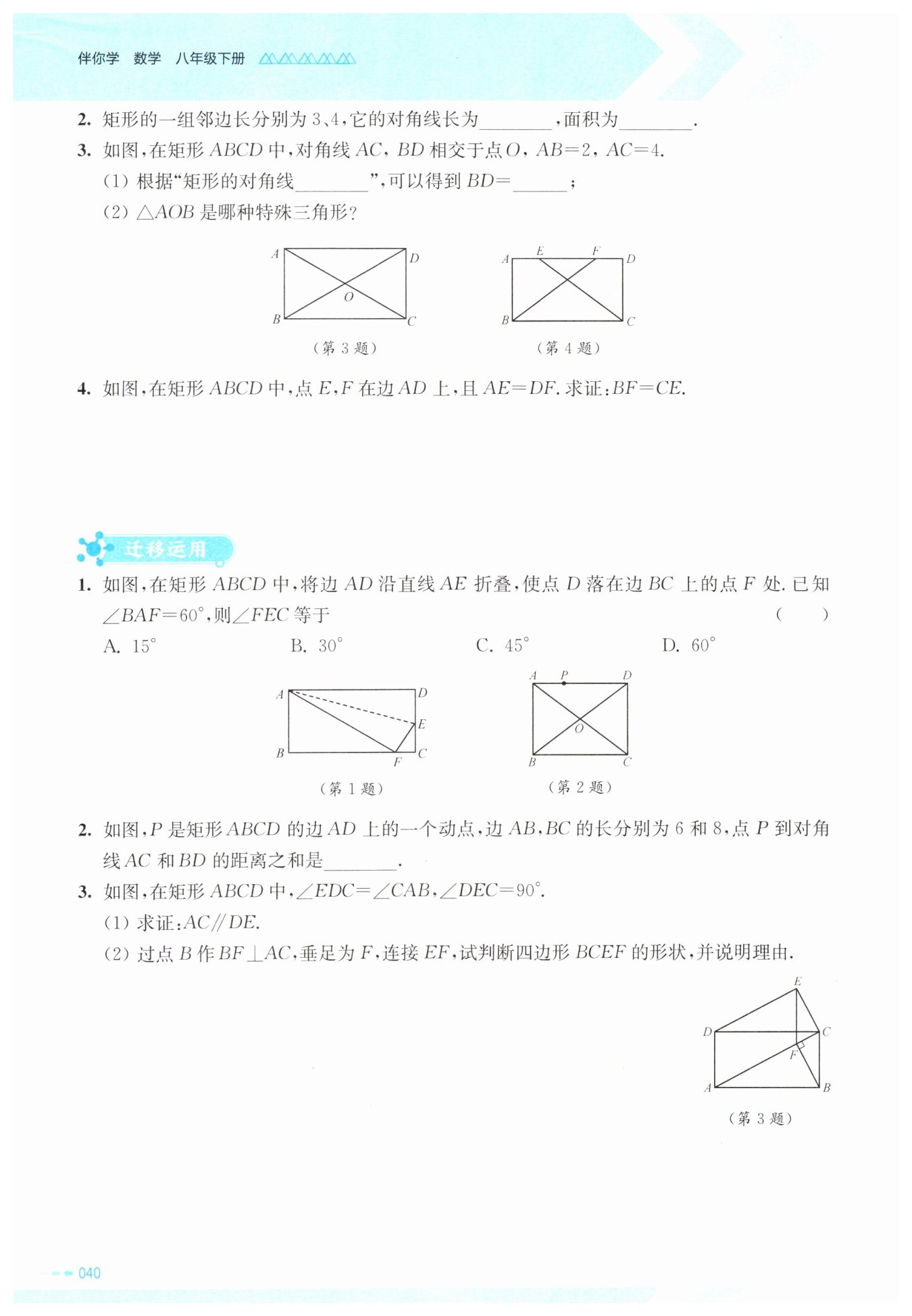 矩形的性质、折叠的性质、直角三角形内角和