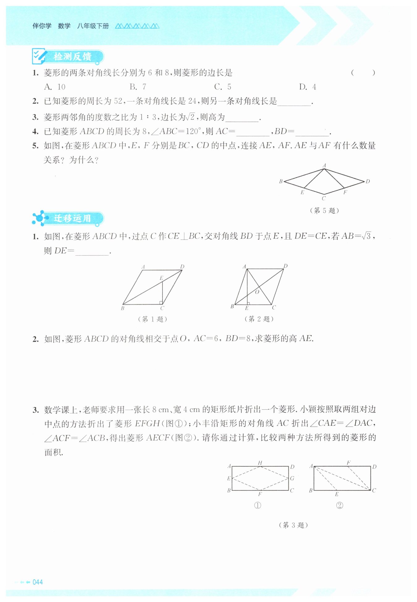 2. 由于$E$,$F$分别是$BC$,$CD$的中点,因此$BE=\frac{1}{2}BC$,$DF=\frac{1}{2}CD$,故$BE=DF$。