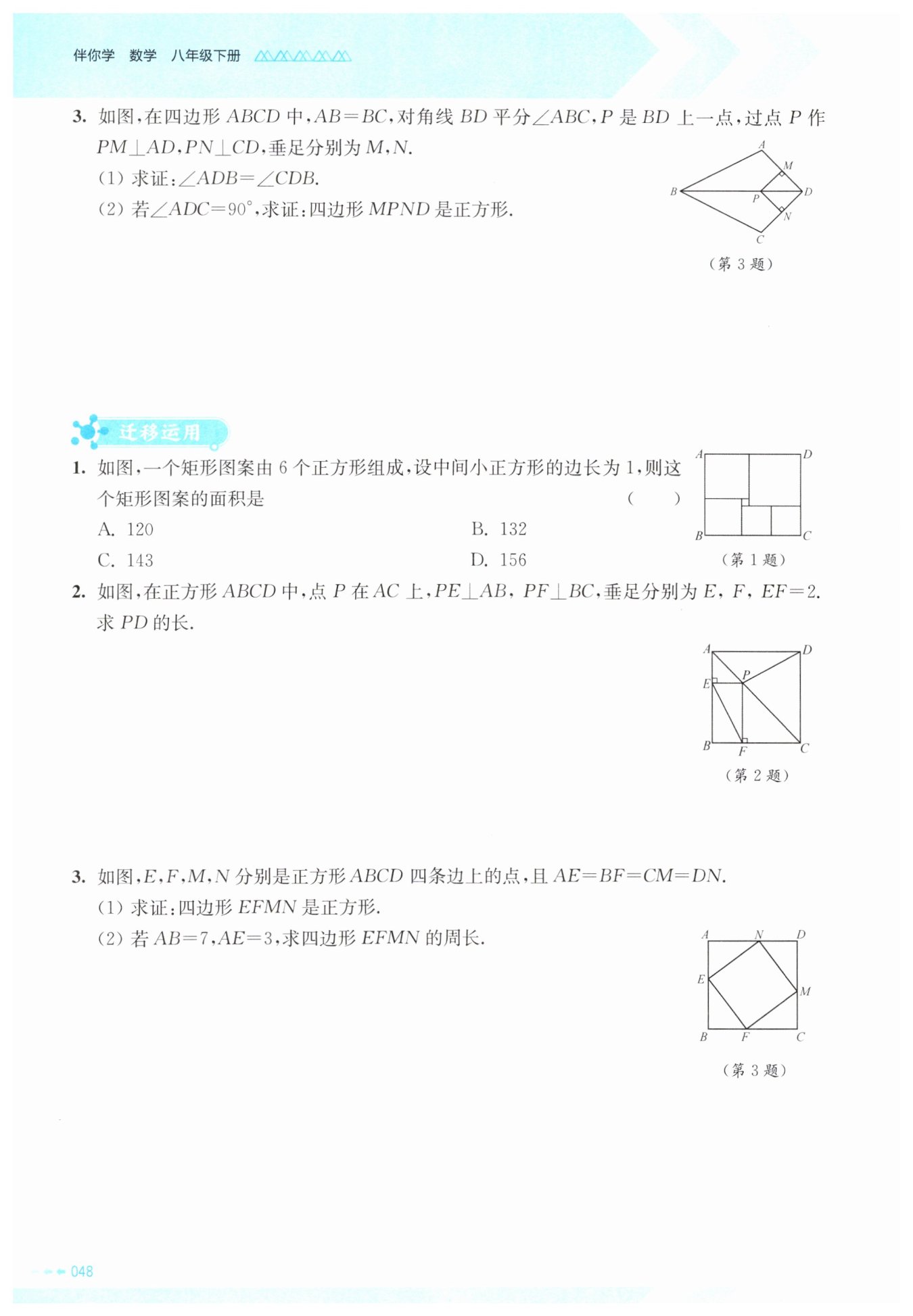 ∴ 矩形MPND是正方形(一组邻边相等的矩形是正方形)。