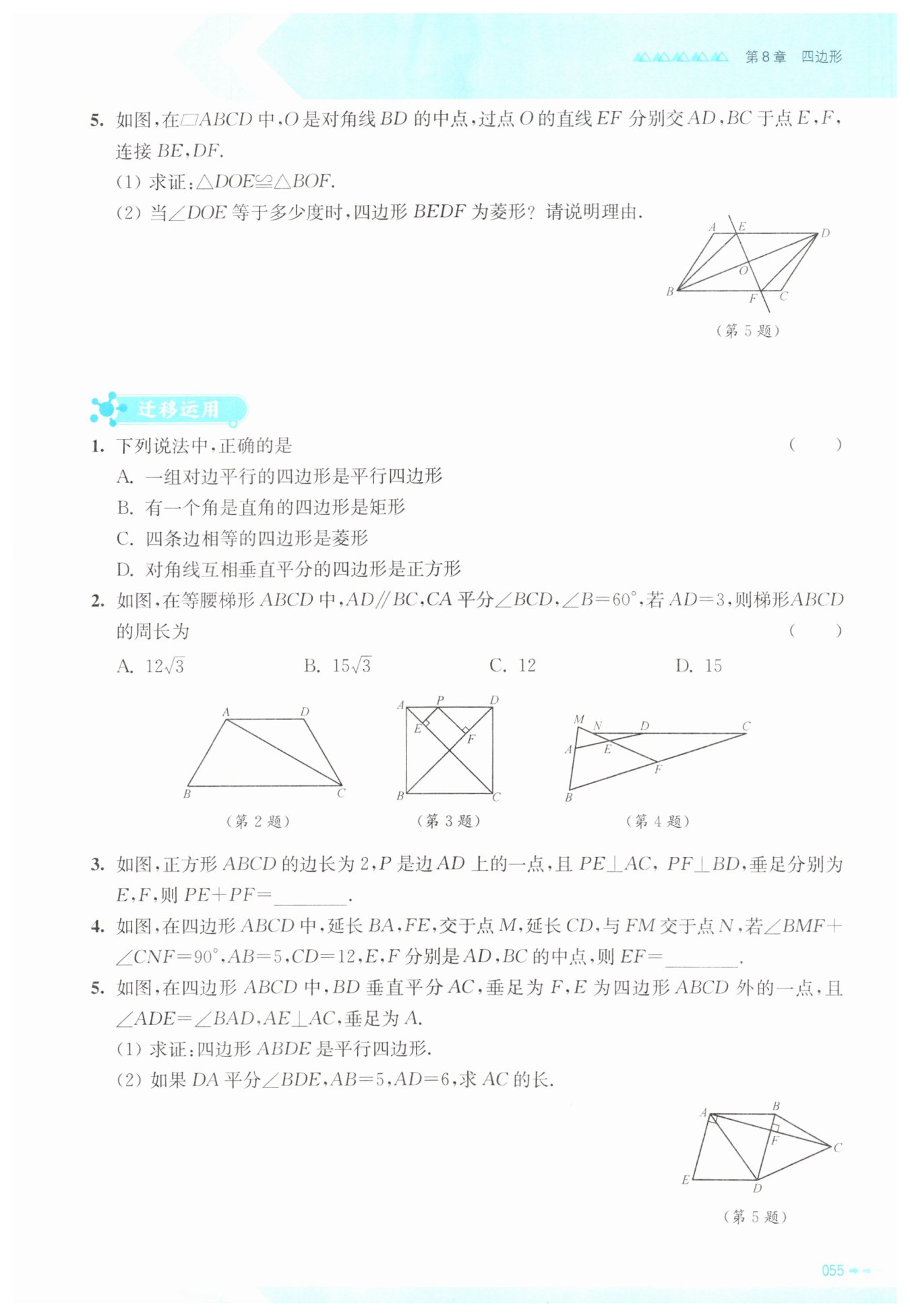 ∴一组邻边相等的平行四边形是菱形,故四边形$BEDF$为菱形。
