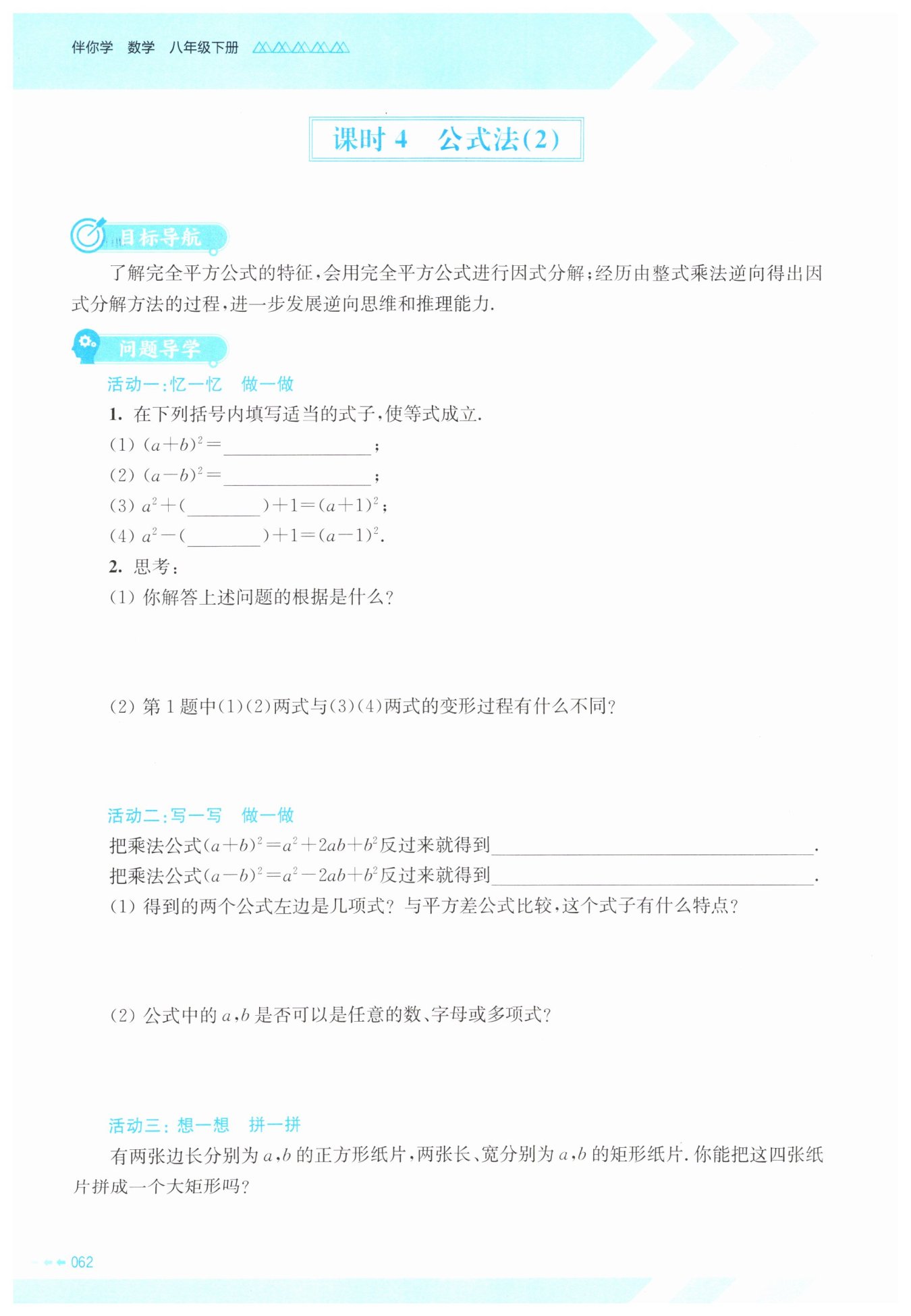 2. (1) 完全平方公式;(2) 第1题(1)(2)是整式乘法,(3)(4)是因式分解,二者变形过程互逆