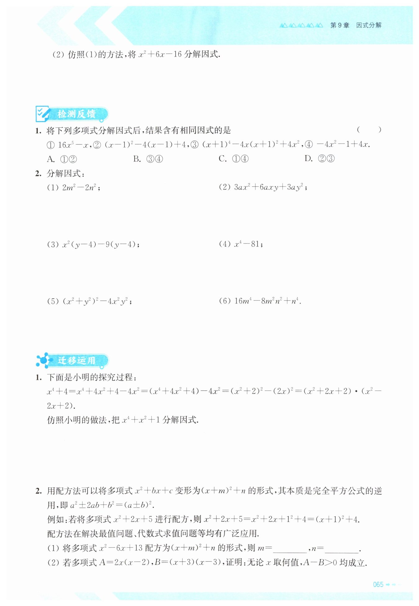 分别对各多项式分解因式: