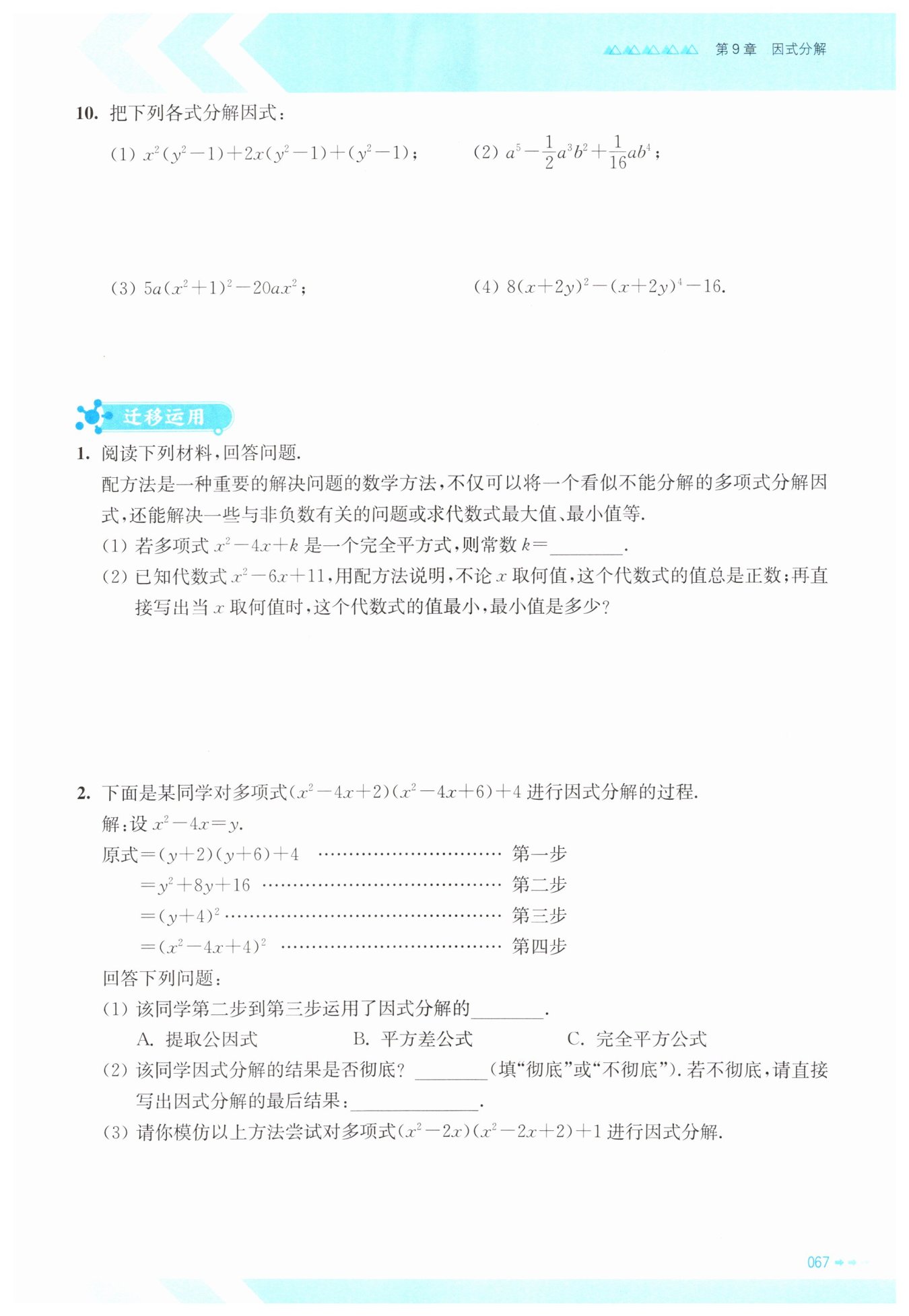 提公因式法分解因式,完全平方公式,平方差公式