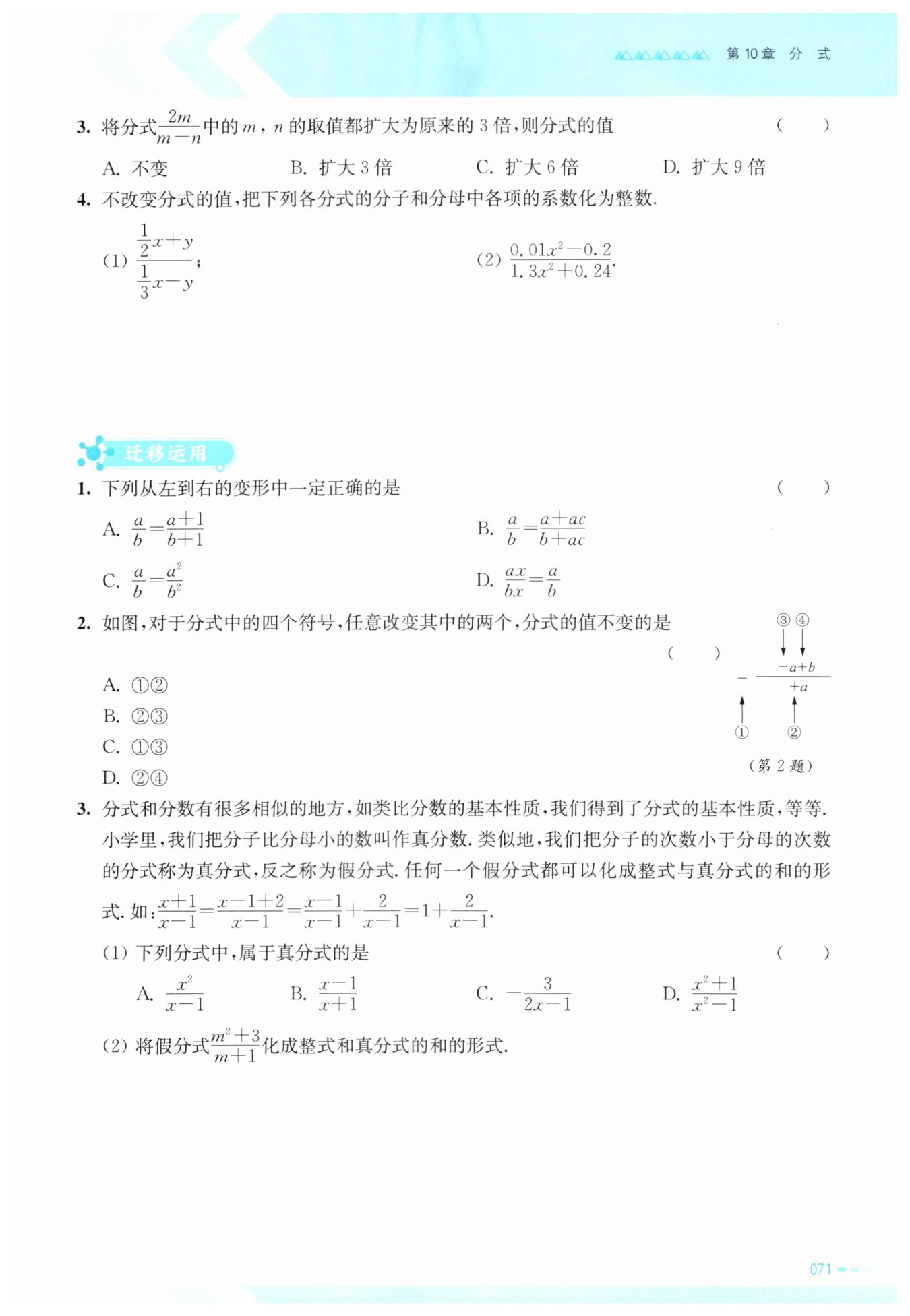 (2) 分式分子分母各项系数的小数位数最多为两位,根据分式的基本性质,将分子分母同乘100: