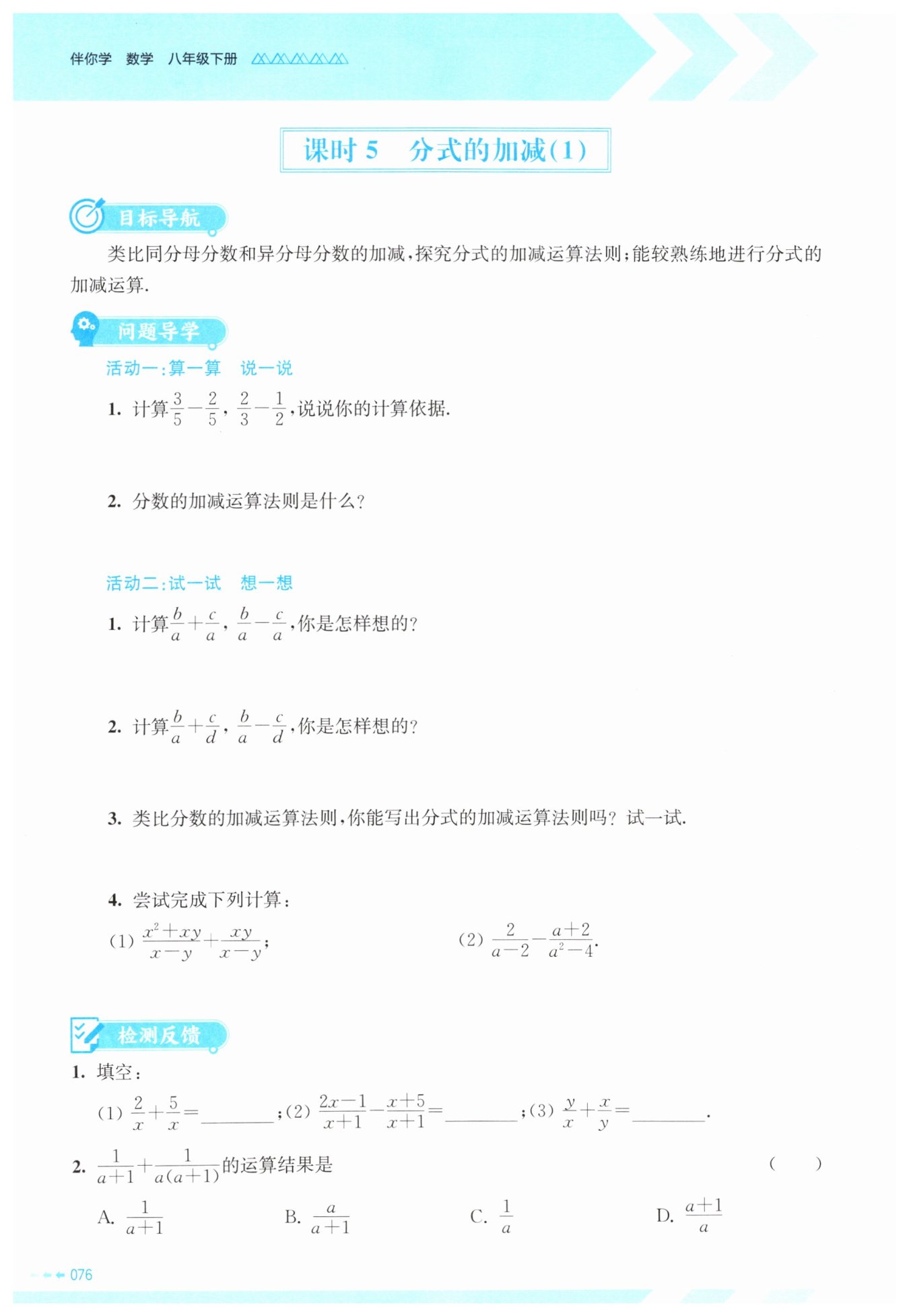 本题通过具体计算和法则总结,考查分数加减法的基本运算能力及对运算依据的理解,帮助夯实分数运算的基础,明确同分母与异分母分数加减的不同处理方法。