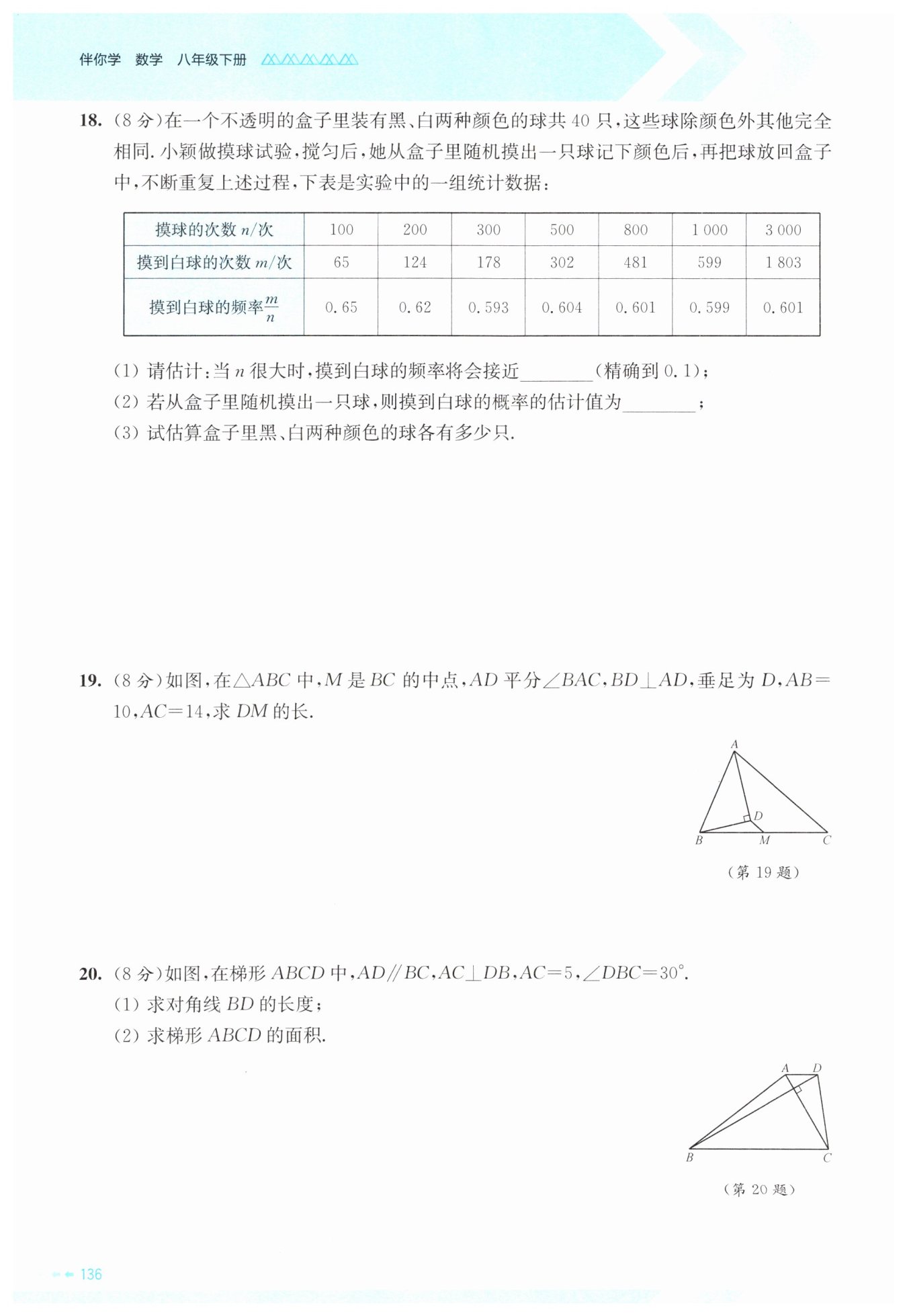 (3) 白球数量:$40×0.6=24$(只),黑球数量:$40-24=16$(只)。