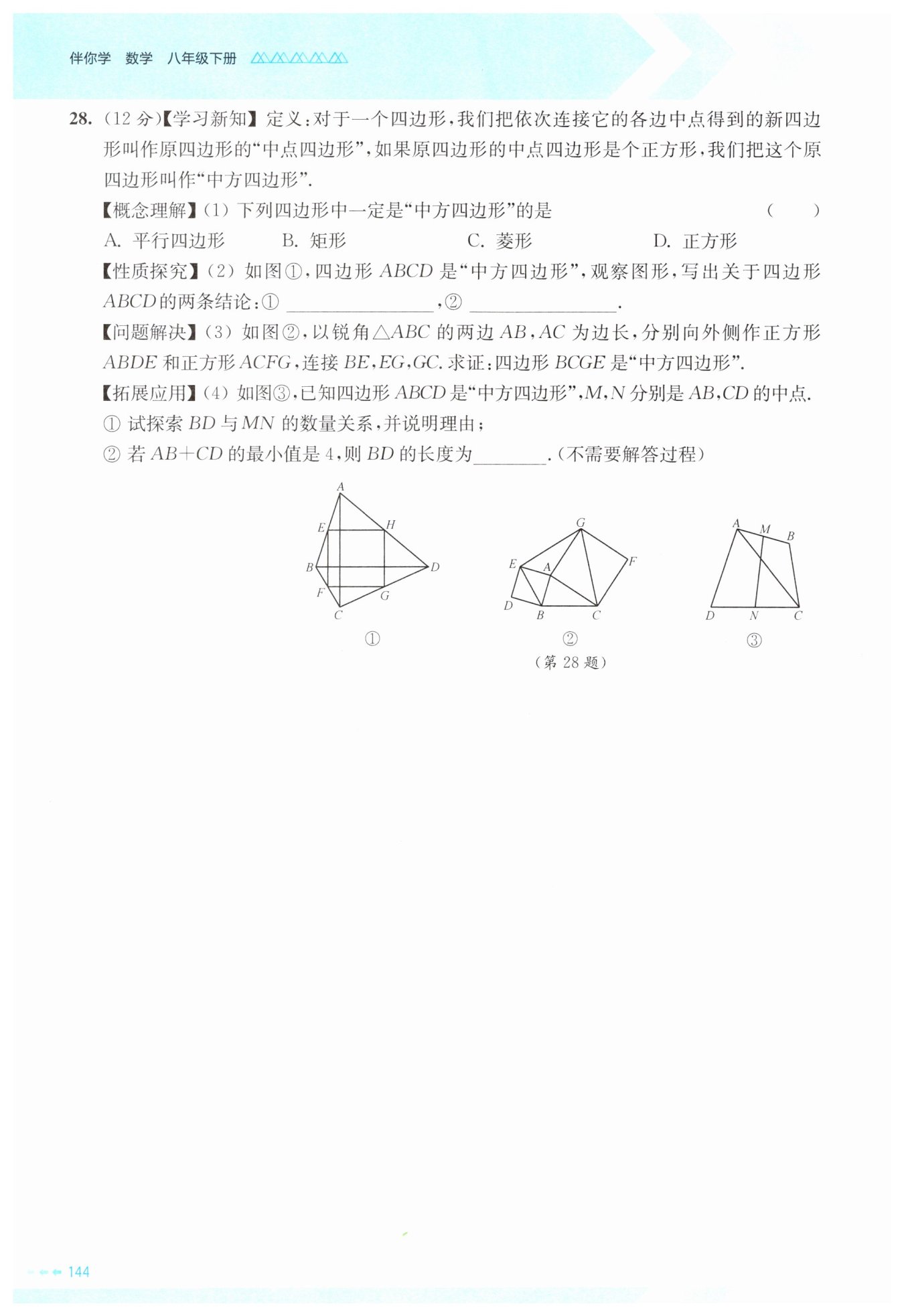 $ \therefore $ 菱形 $ MNRL $ 是正方形,即原四边形 $ BCGE $ 是“中方四边形”