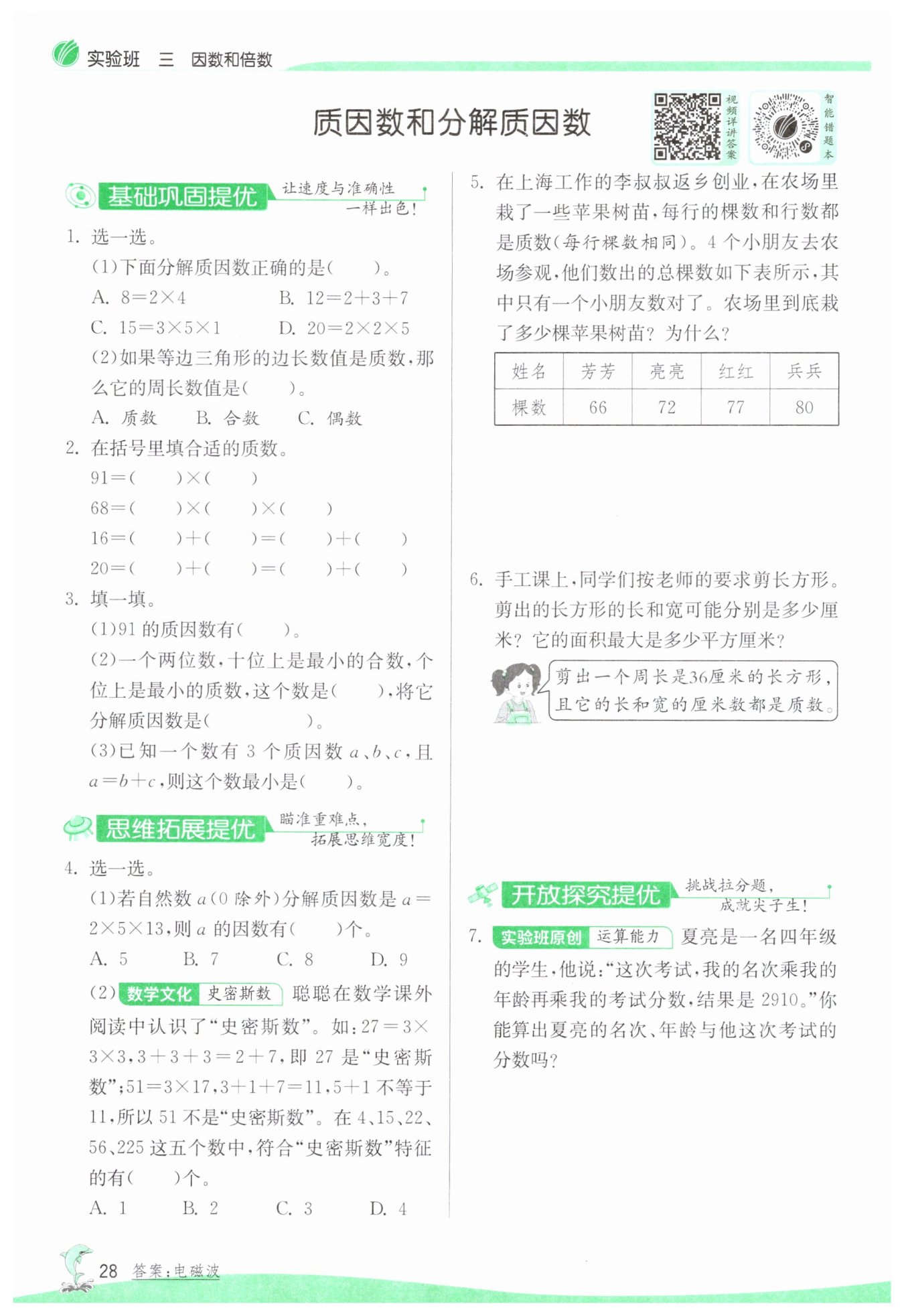 结合四年级学生的年龄特征,年龄为$2×5=10($岁$)$
