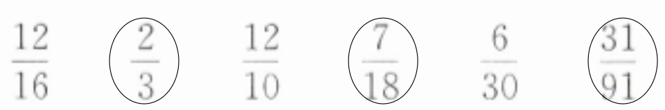 ${\frac {12}{16}=\frac {3}{4}},$${\frac {12}{10}=\frac {6}{5}},$${\frac {6}{30}=\frac {1}{5}}$