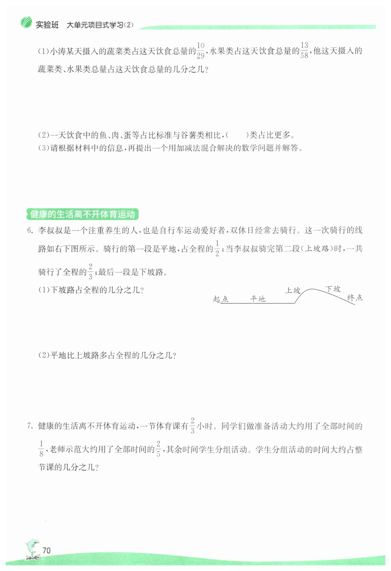 答:平地比上坡路多占全程的$\frac{1}{3}。$