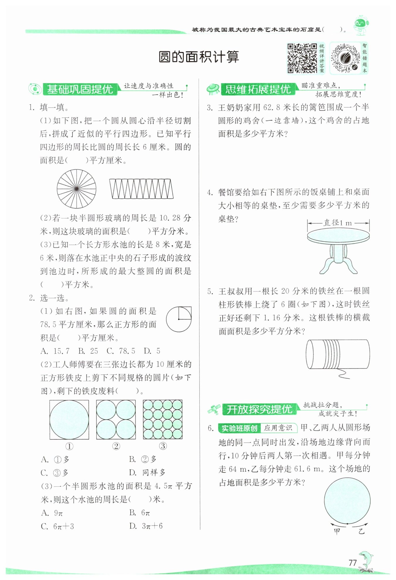 答:至少需要0.785平方米的桌垫。