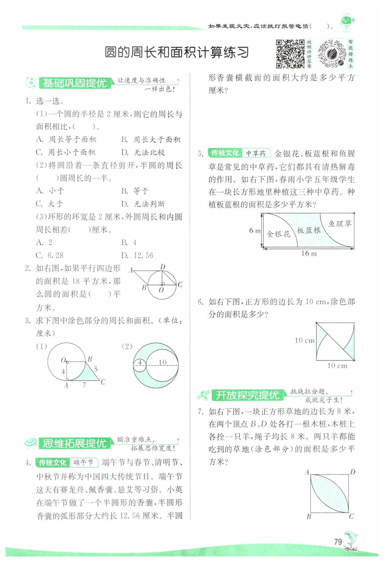 (2)周长:$3.14×(10+4)×2=87.92$(厘米)