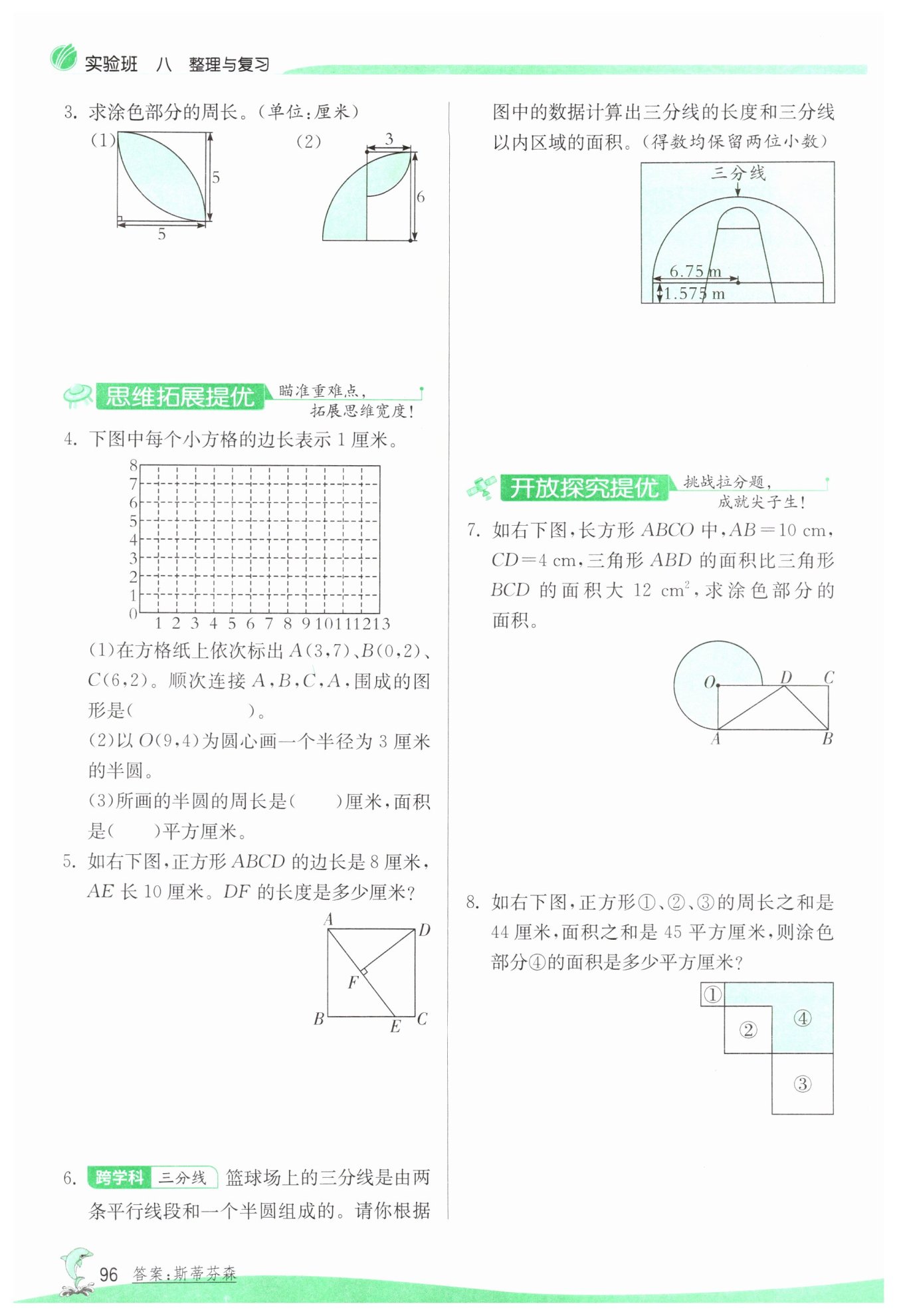 (2) $3.14×6×2÷4+3.14×3×2÷4+(6-3)×2=20.13$(厘米)