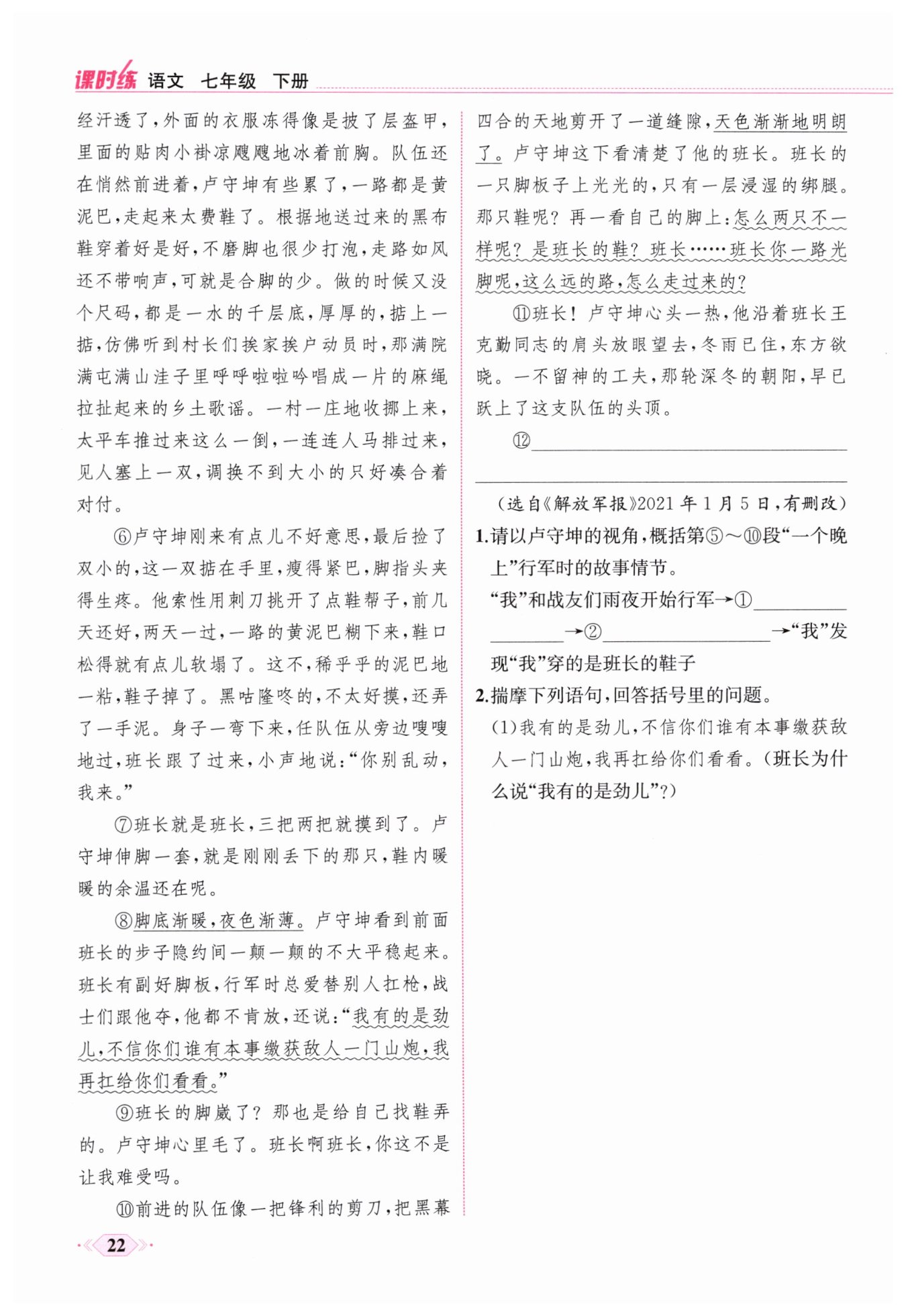 行军中“我”的鞋子掉了