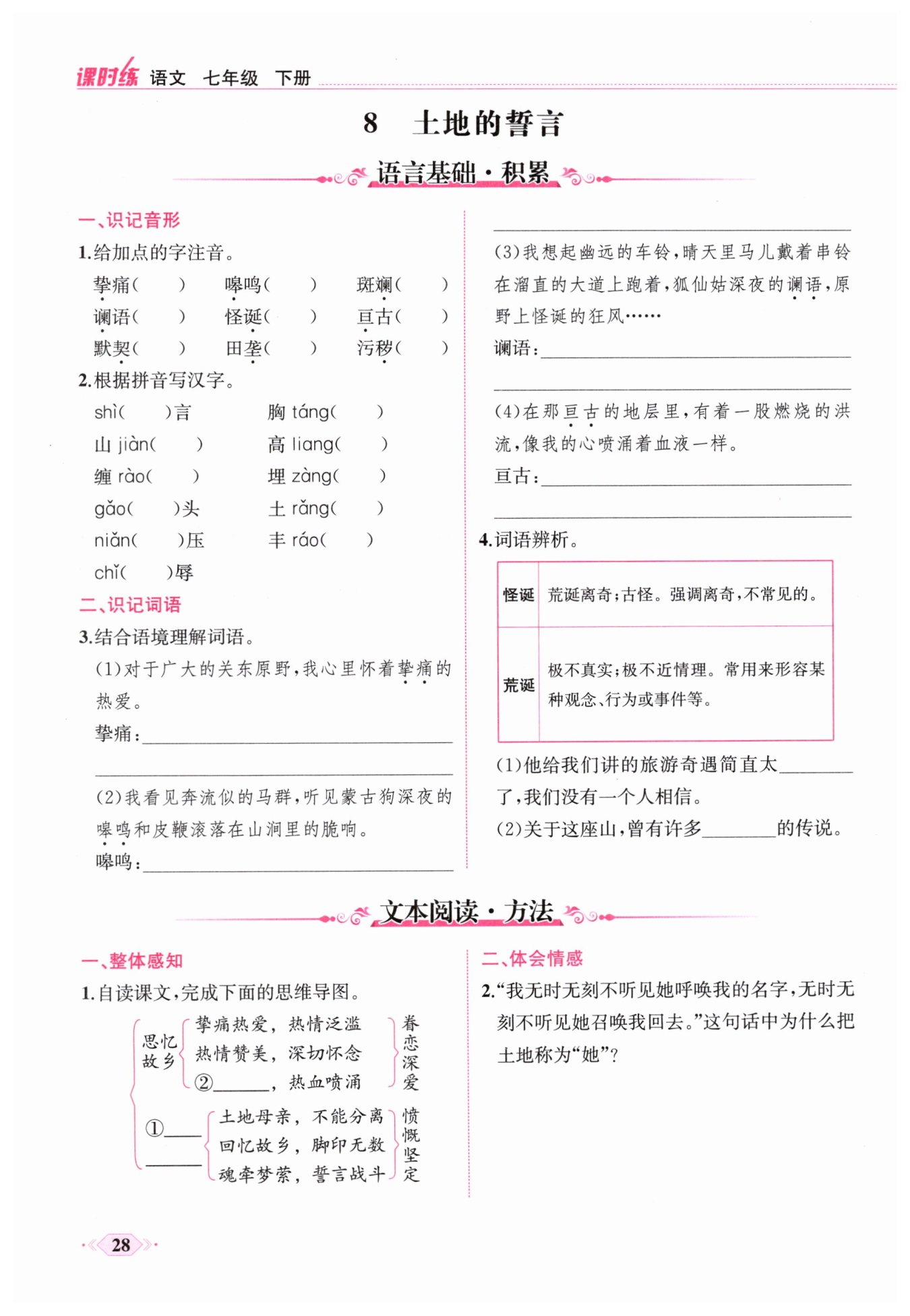 作者将倾诉的对象拟人化,以“她”而不是“它”相称,隐含着将土地比作母亲的意思,表现出作者对土地的眷恋和热爱。