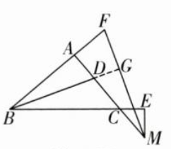 $解:BD⊥MF.理由如下:\ $ $如图,延长BD,交MF于点G.\ $ $∵在Rt△ABC和Rt△CME中,∠BAC=∠CEM,∠BCA=∠MCE,\ $ $∴∠ABC=∠CME.$ $∵BD、MF分别为∠ABC和\ ∠AME的平分线,\ $ $∴∠FBG=∠AMF.$ $∵∠AMF+∠F=90°,\ $ $∴∠FBG+∠F=90°,$ $∴∠BGF=90°,$ $∴BD⊥MF.$