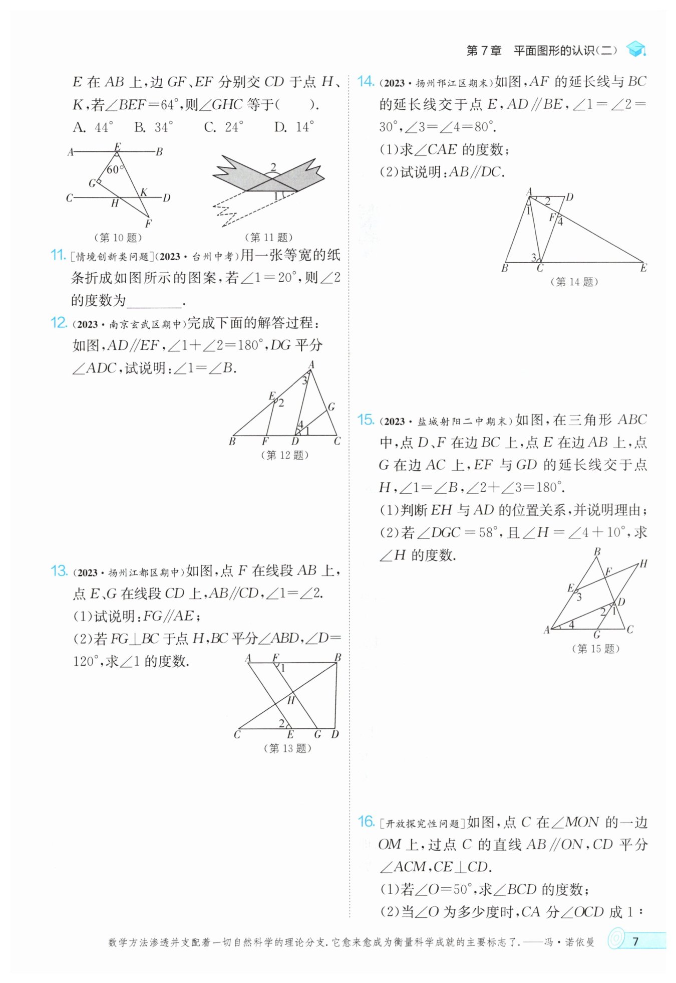 $解:∵AD//EF.∴∠2+∠3=180°.$ $ 又∠1+∠2=180°,∴∠1=∠3.$ $ ∵DG平分∠ADC,∴∠1=∠4,∴∠3=∠4,$ $ ∴AB//DG,∴∠1=∠B.$