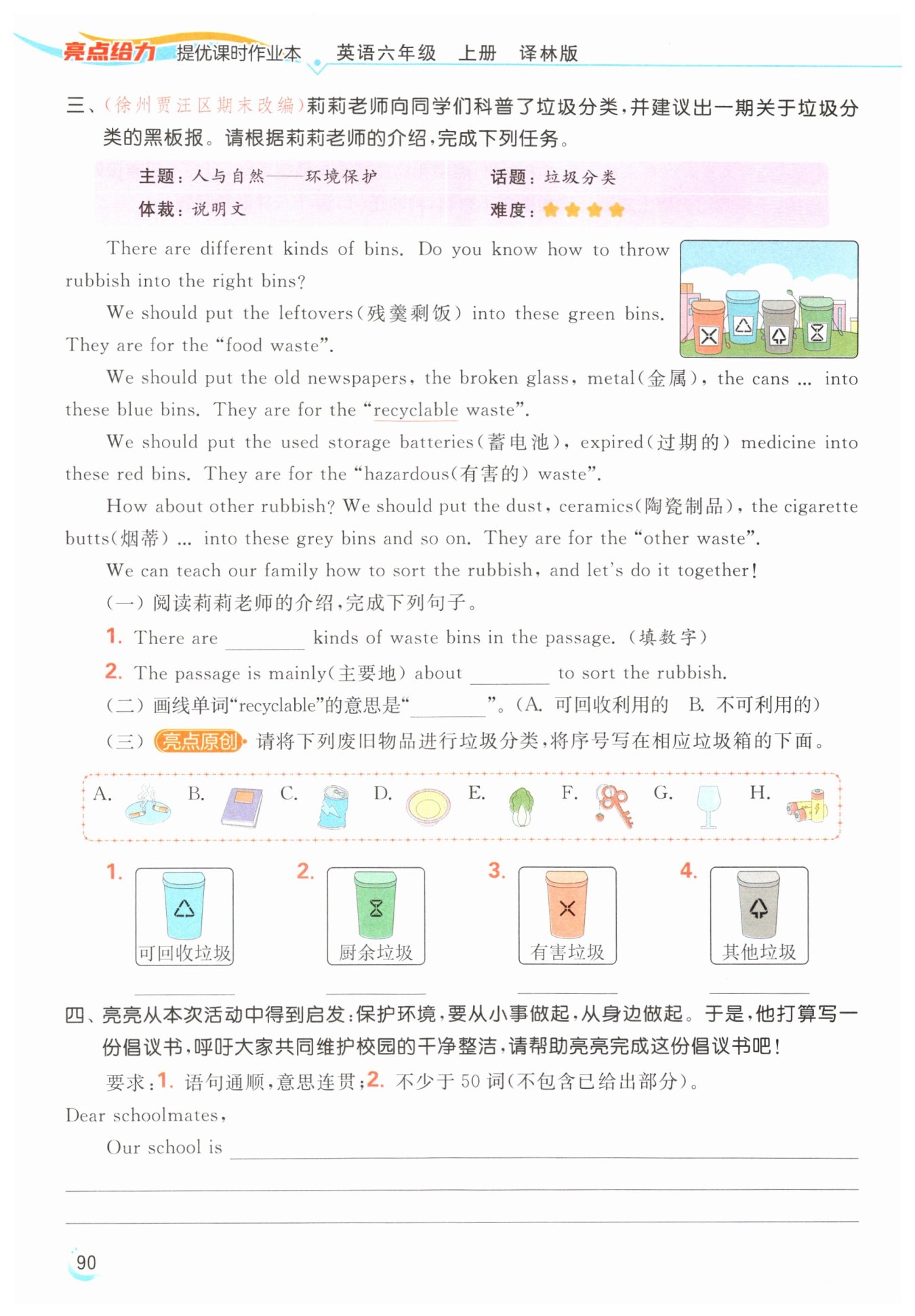 anywhere. We should put it in the right bins. We should also plant more trees and flowers in our school. Trees and flowers can make our school more beautiful and make the air fresher. Let’s do it now!