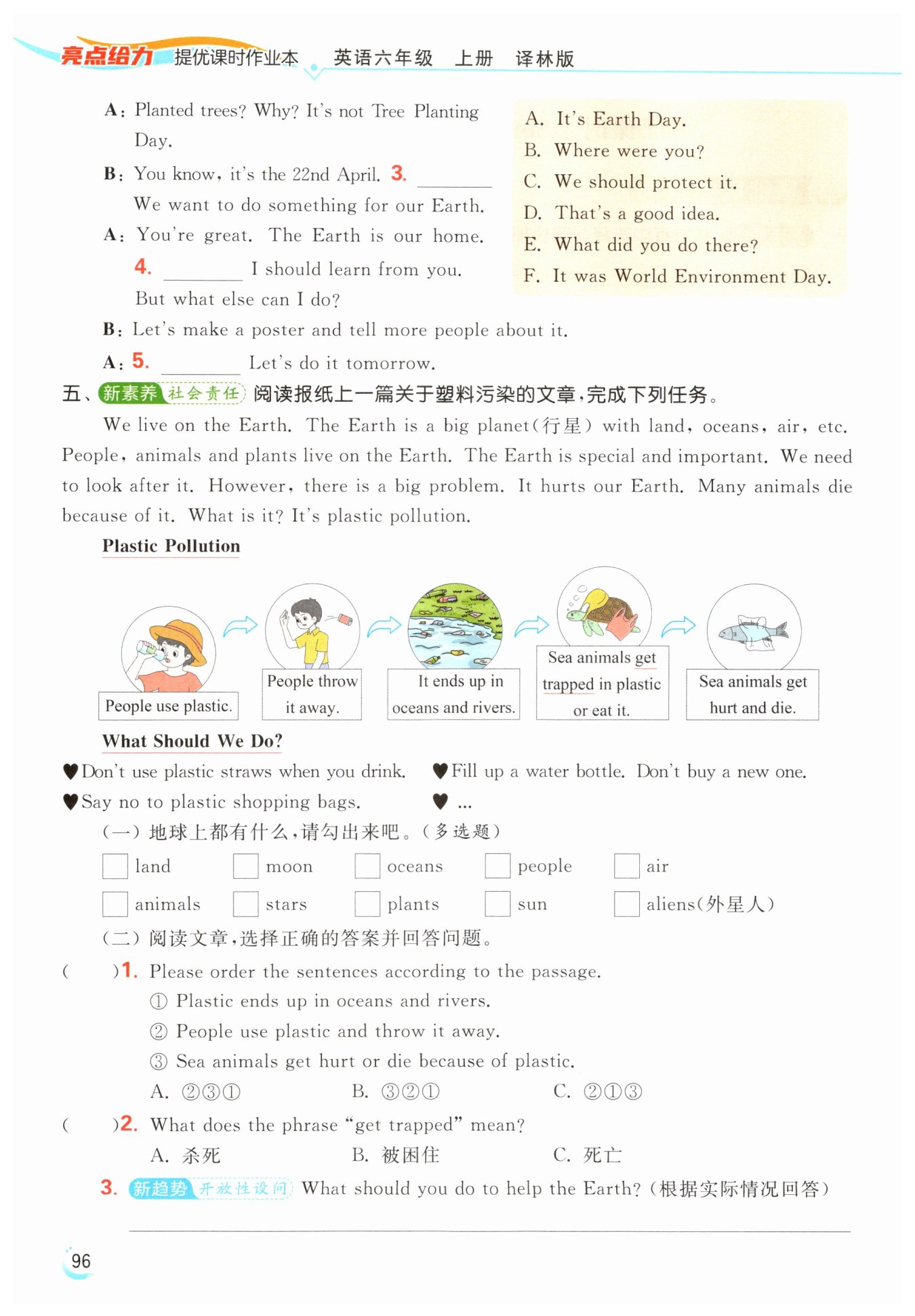 I should use glass straws/bottles when I drink. / I should say no to plastic shopping bags. (答案不唯一)