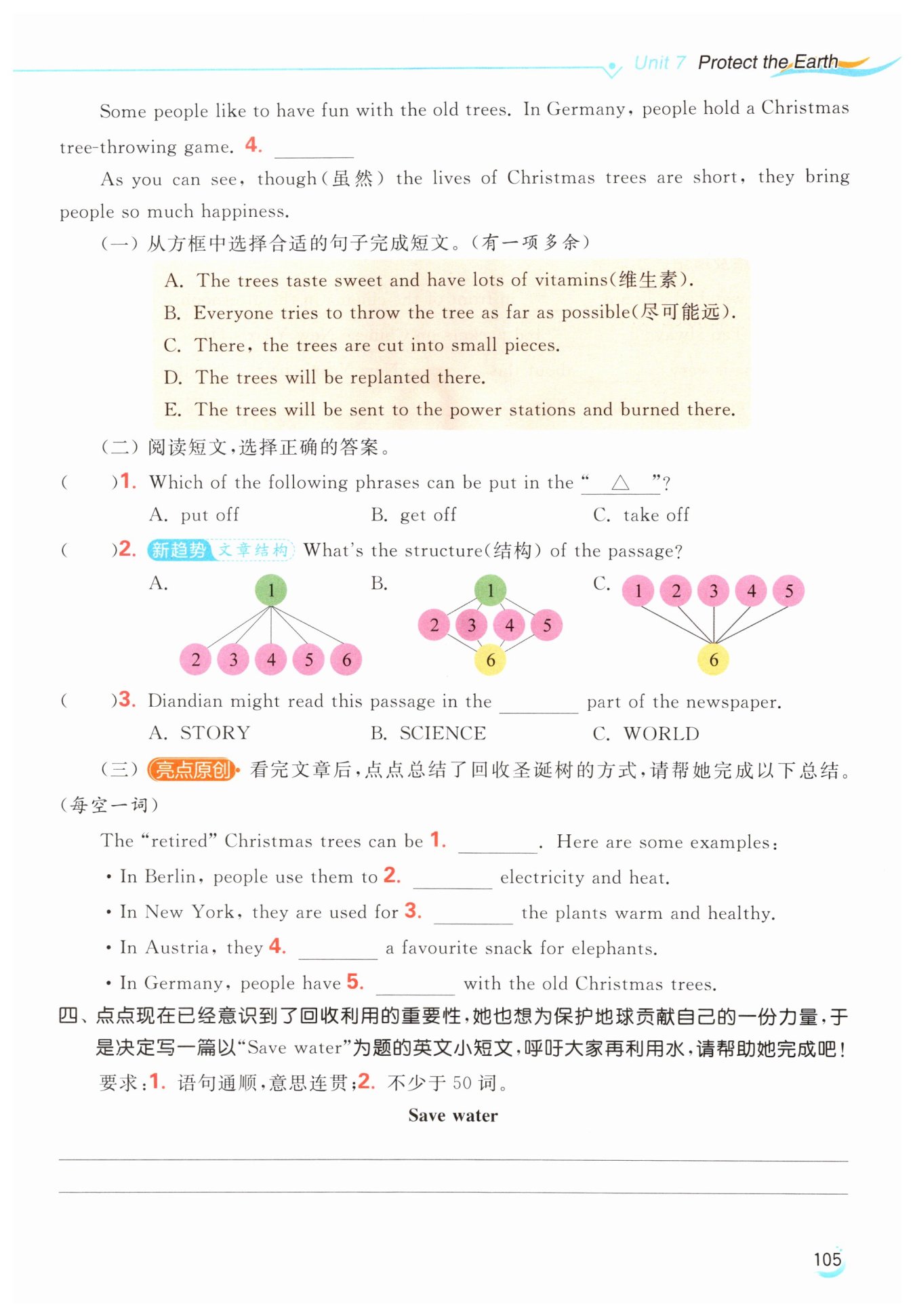 Water is useful. We drink water every day. We use water to brush our teeth and wash our face. We use water to do many other things. People can't live without water. But in many places, there is not much water. So we should save water. We can reuse water. After rinsing(冲洗) rice or washing hands, we can reuse the water to mop the floor and water flowers.