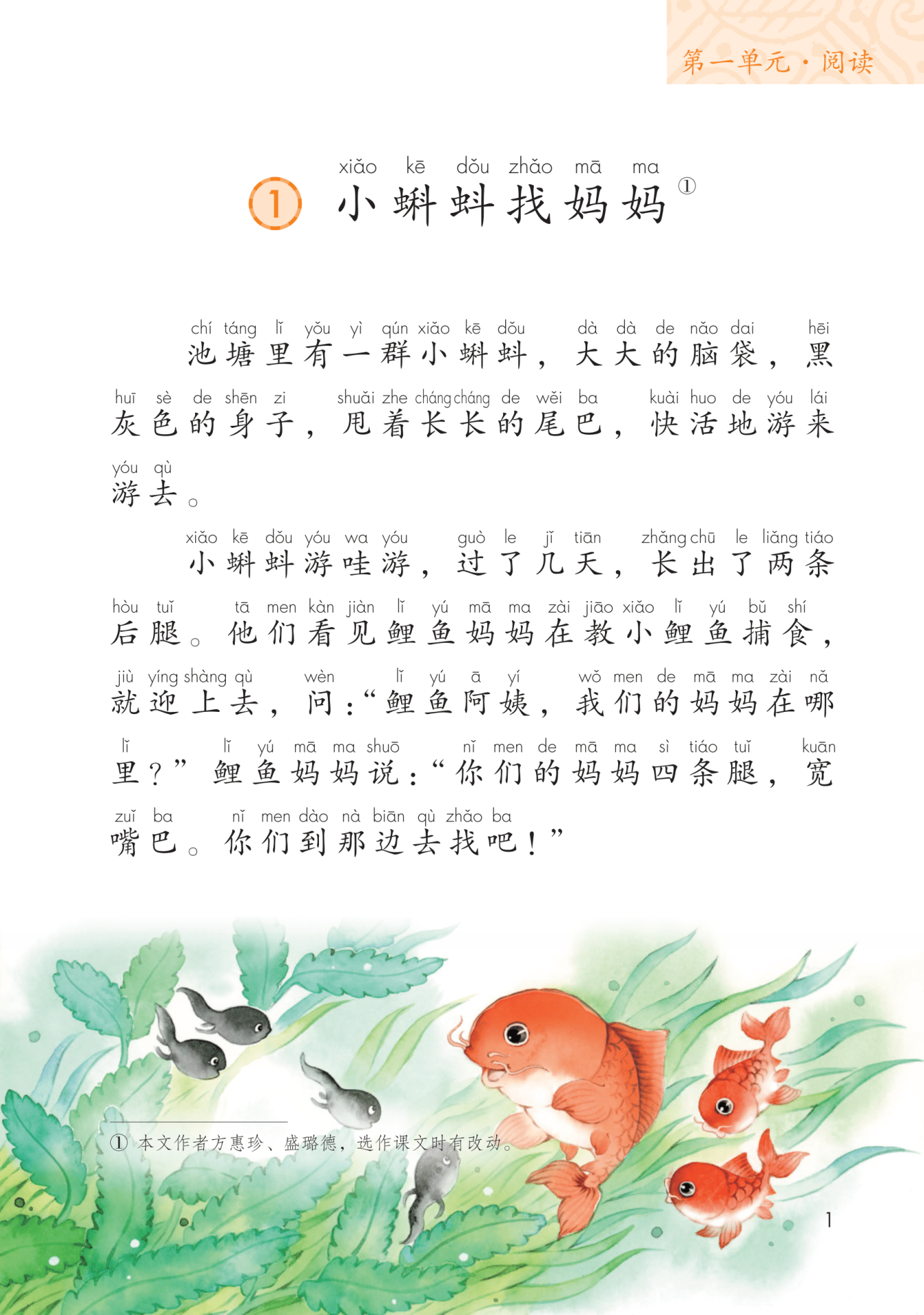 方惠珍:著名儿童文学作家,曾荣获全国优秀儿童文学奖。与盛璐德共同创作《小蝌蚪找妈妈》。盛璐德:长期从事幼儿教育,在教学实践中创作不少音乐、游戏、儿歌和诗歌等教材,曾荣获全国优秀儿童文学奖,与方惠珍共同创作《小蝌蚪找妈妈》。