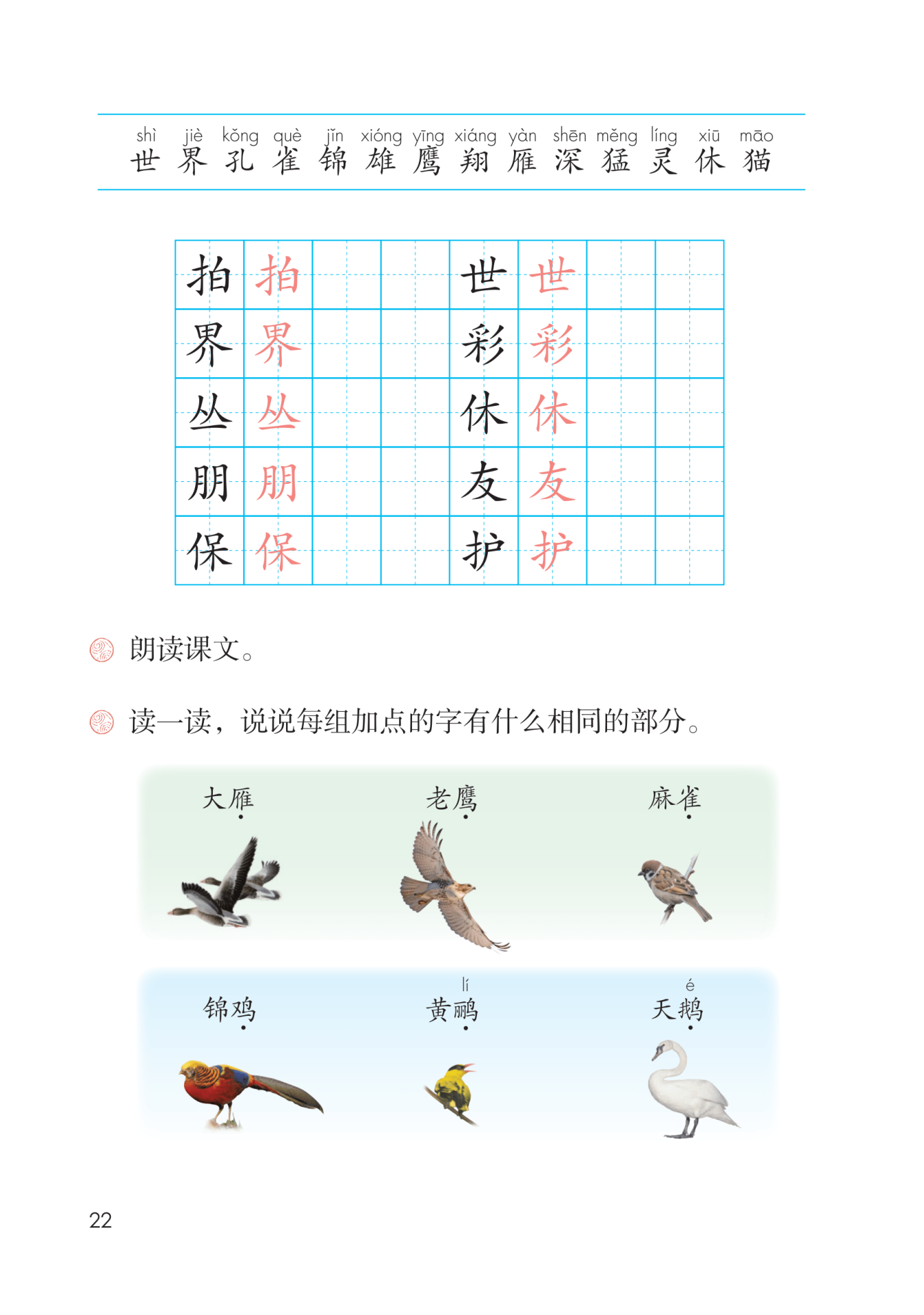 是短尾巴的鸟),如雁、鹰、雀。第二组加点的字都含有“鸟”,如鸡、鹂、