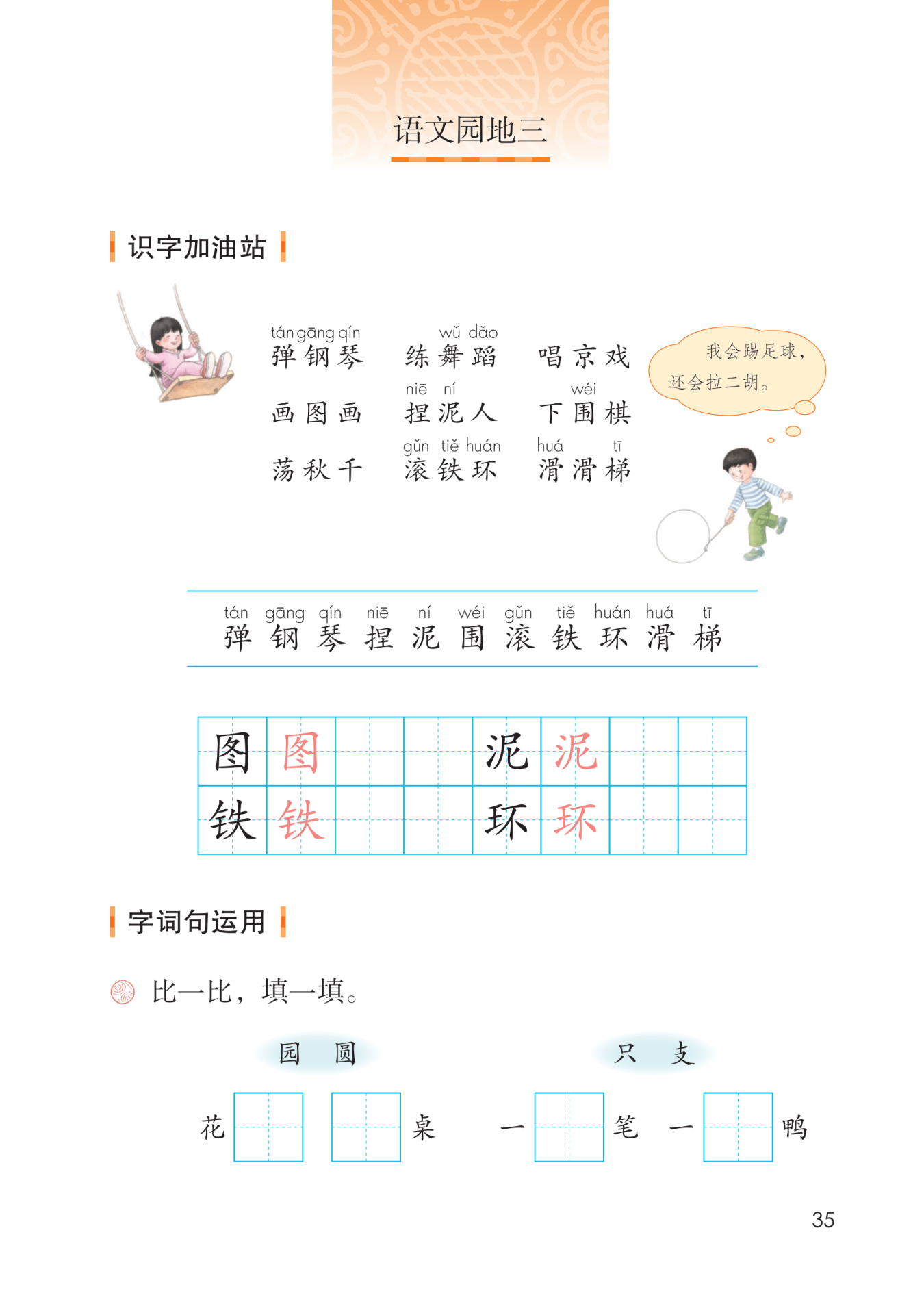 这样的词语还有:弹琵琶、练书法、唱歌曲、画漫画、捏糖人、下象棋、