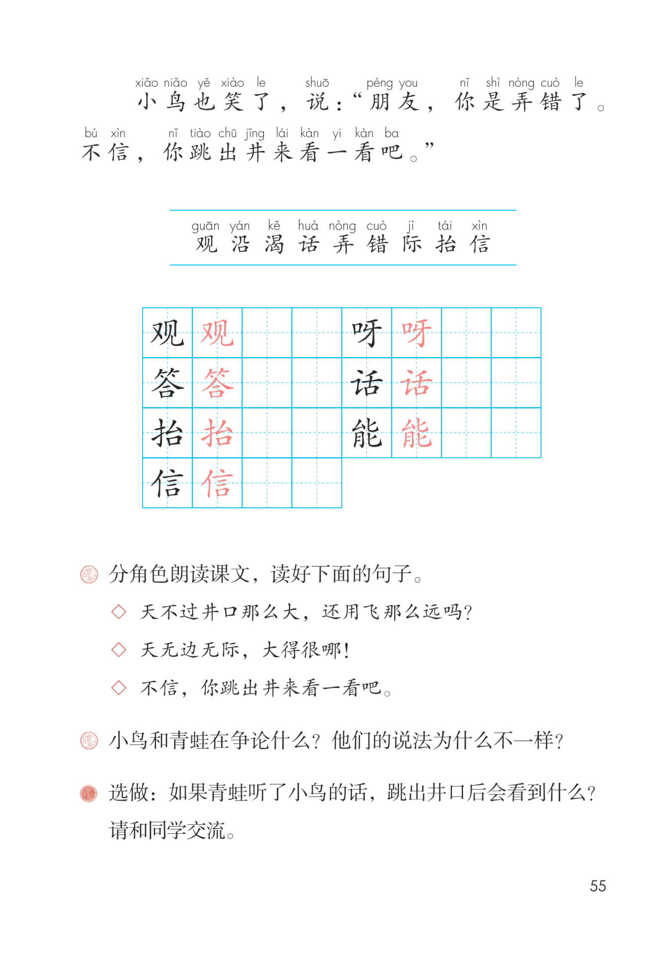 句末语调上扬,读出青蛙