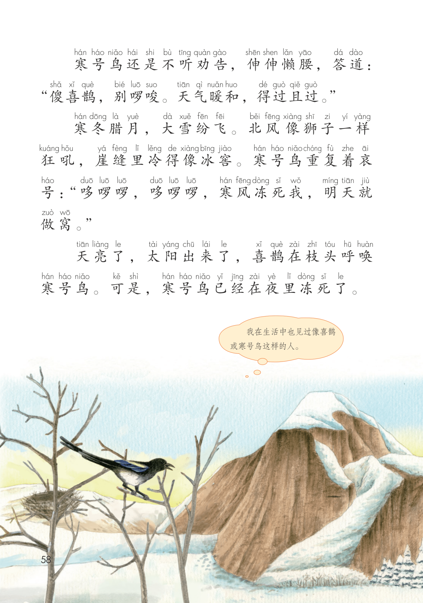 喜鹊的态度是“现在懒惰,将来难过”;寒号鸟的态