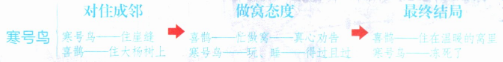 【语言描写|动作描写】从寒号鸟的动作、语言可见他的懒惰。寒号鸟不听劝,还嘲笑喜鹊,预示他将面临更悲惨的生活。