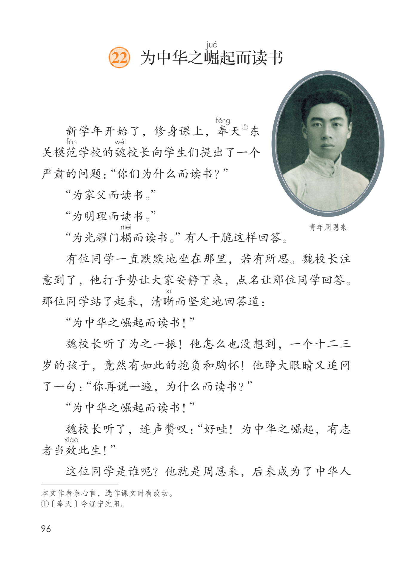 实,进而立志要为中华之崛起而读书,赞扬了周恩来博大的胸怀和