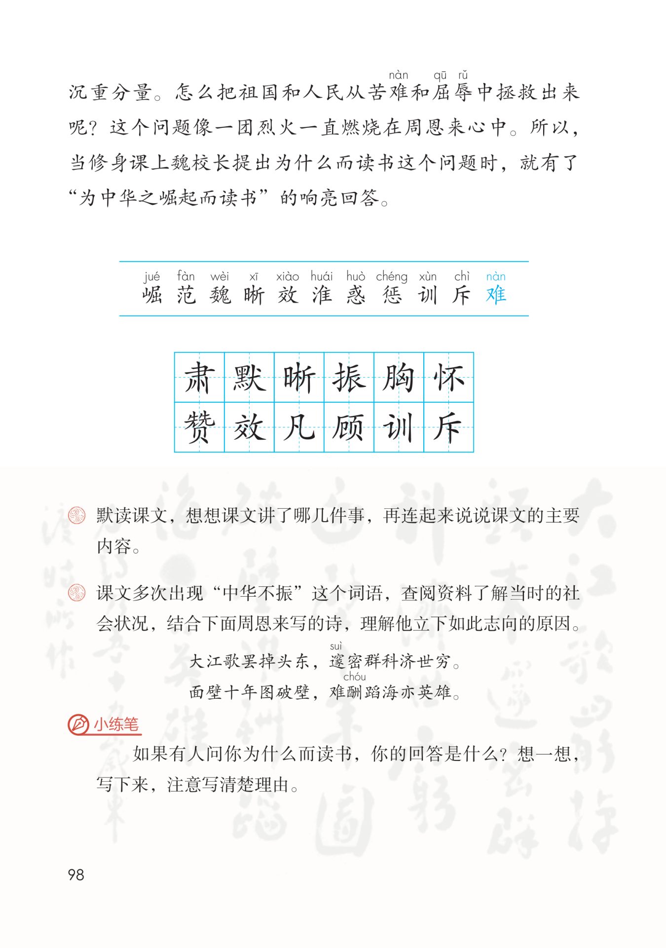 明白“中华不振”的含义,下决心要“为中华之崛起而读书”。
