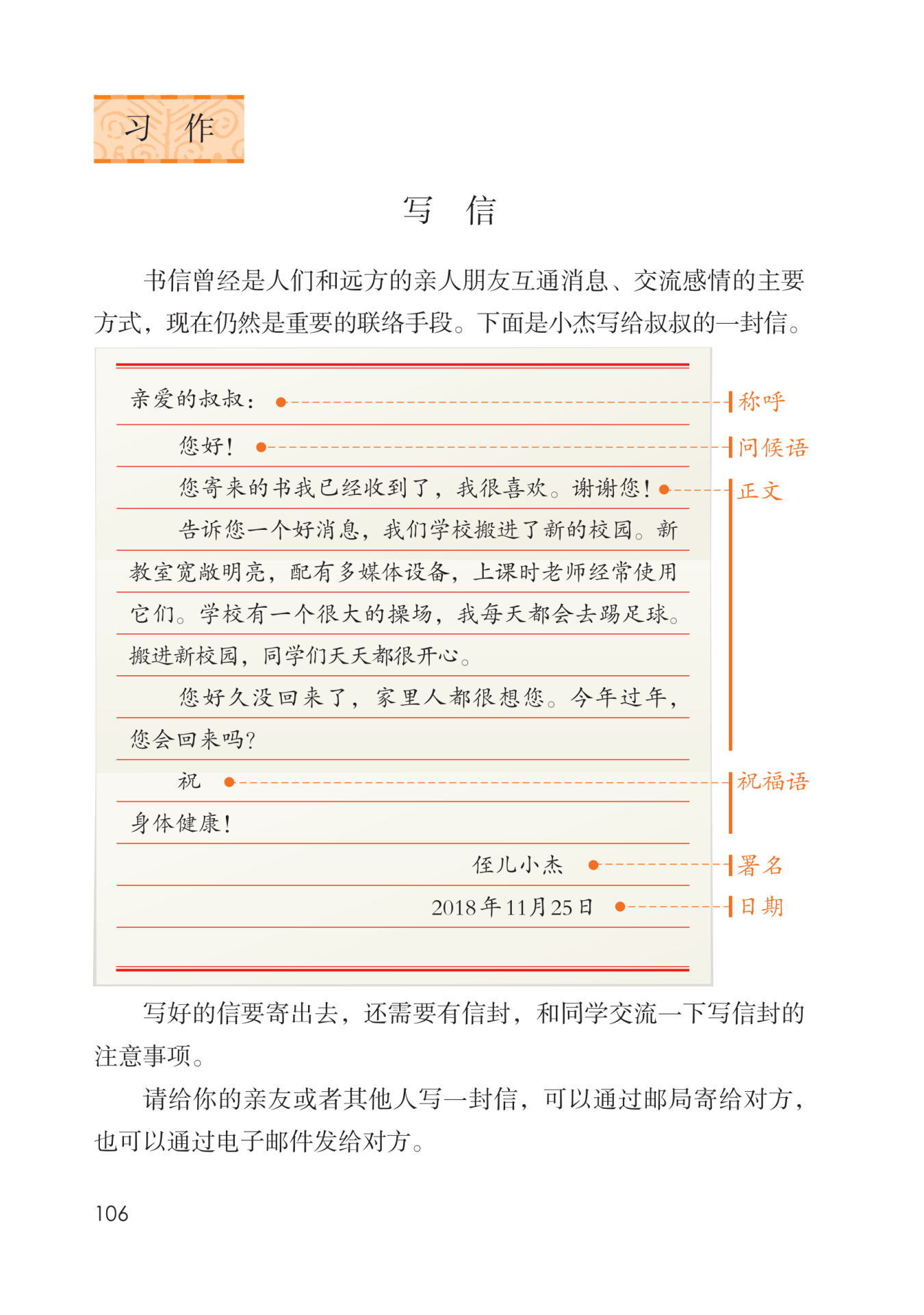 2. 写信内容。介绍自己最近学习、生活、健康等情况,也可以写一写