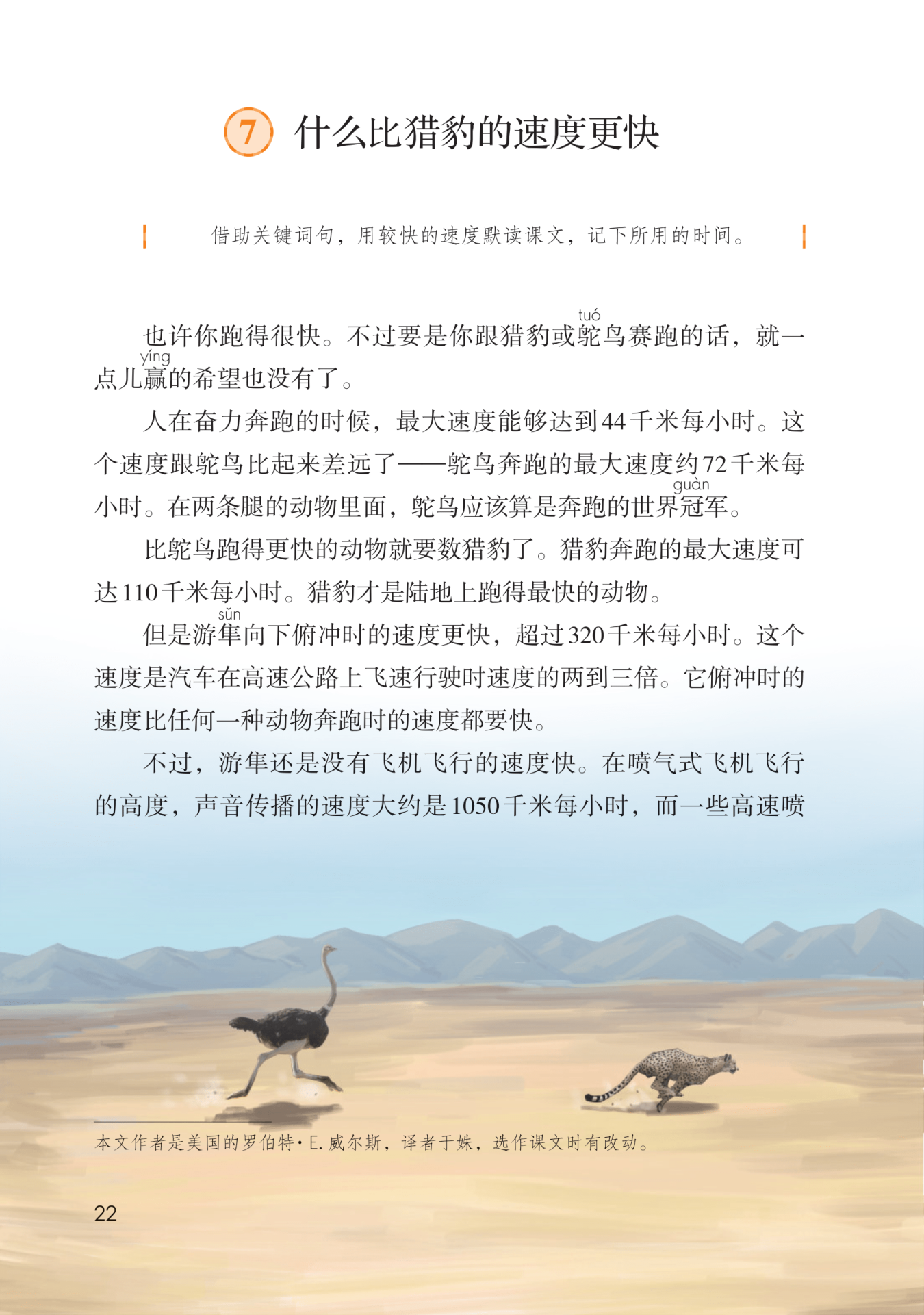 作比较,猎豹的速度比鸵鸟快。