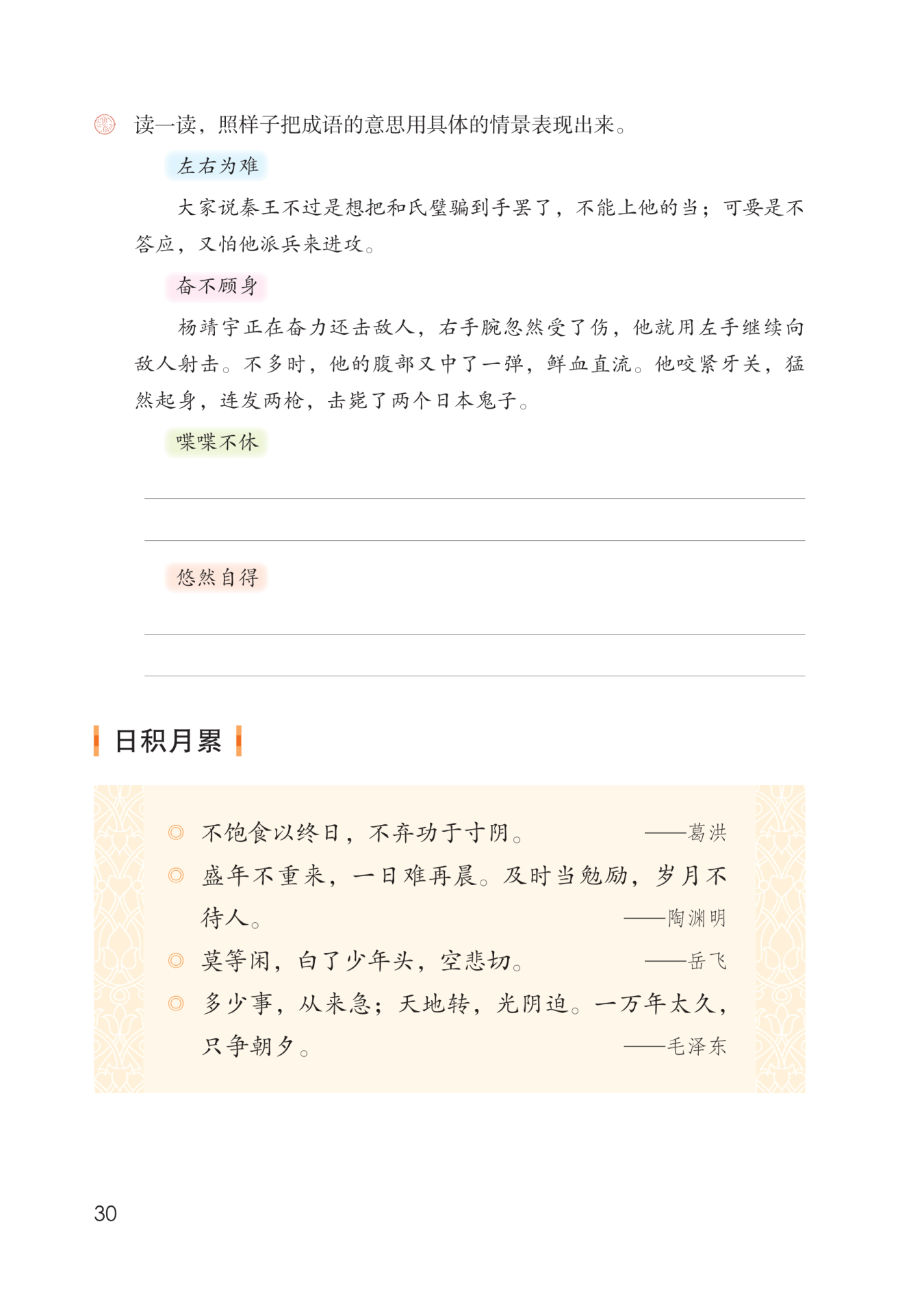 2. 风华正茂的岁月不会重来,犹如一天里头不会有两个早晨。年轻的时候,要勉励自己及时努力,否则,岁月一去不回,它是不会停下来等待人的。