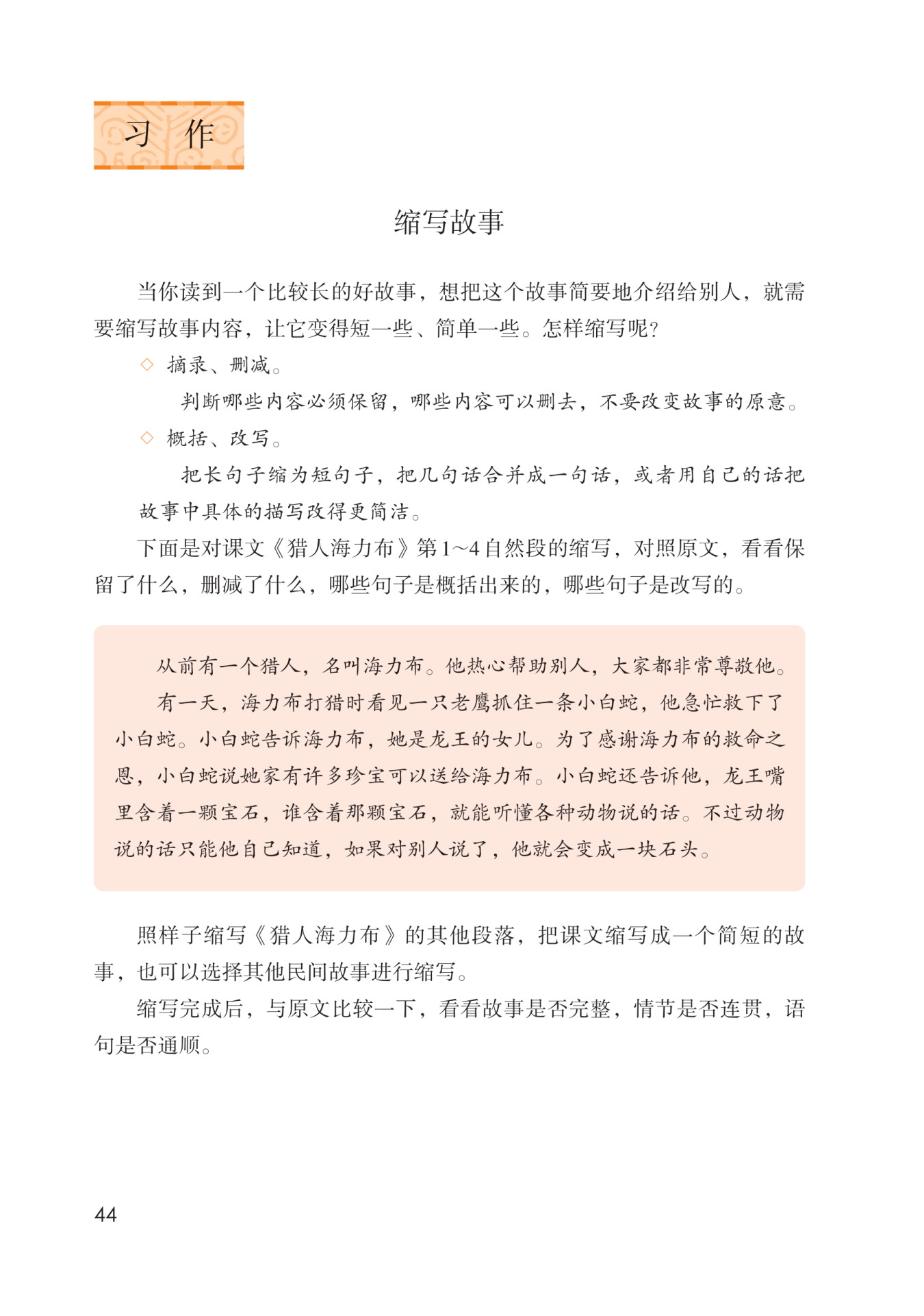 2. 摘录和删减。判断一下在不改变故事原意的情况下,哪些内容必须