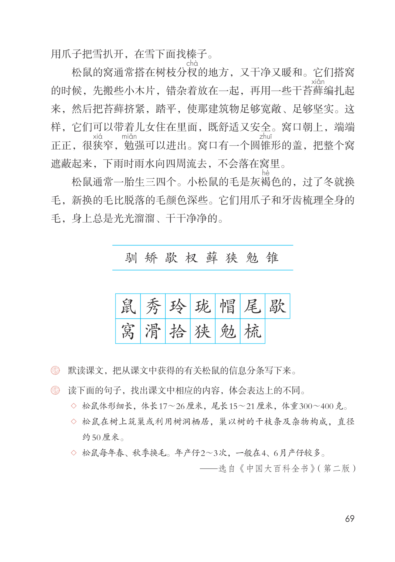 第四部分(⑤):补充介绍了松鼠的繁殖情况、何时换毛及喜欢洁净的生活习性。