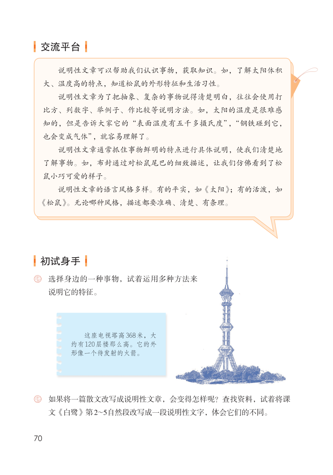 能交流、总结出说明性文章的特点、说明方法和语言风格。