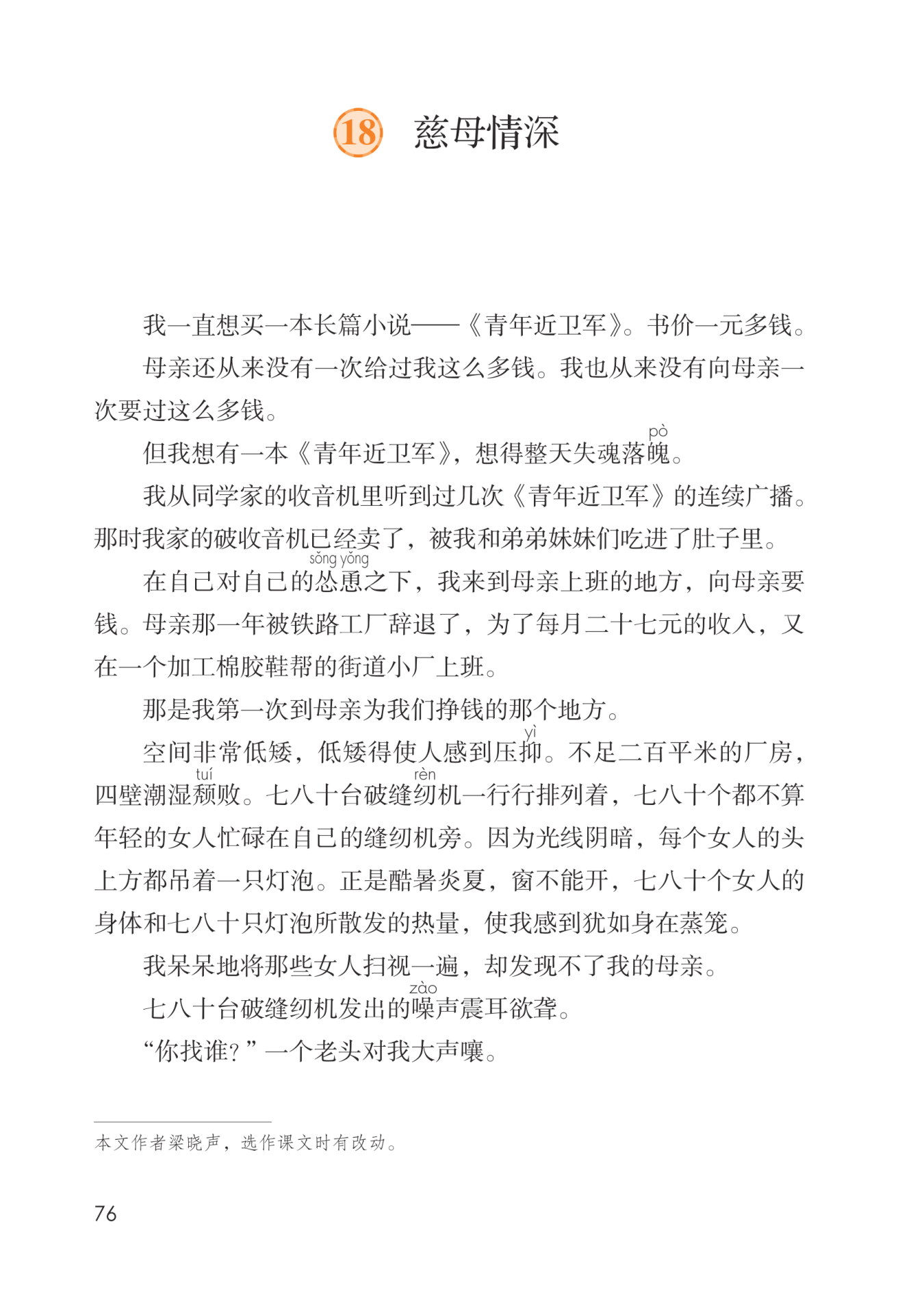 母亲的新工作收入很低,说明我家生活拮据,与下文极差的工作环境相照应。